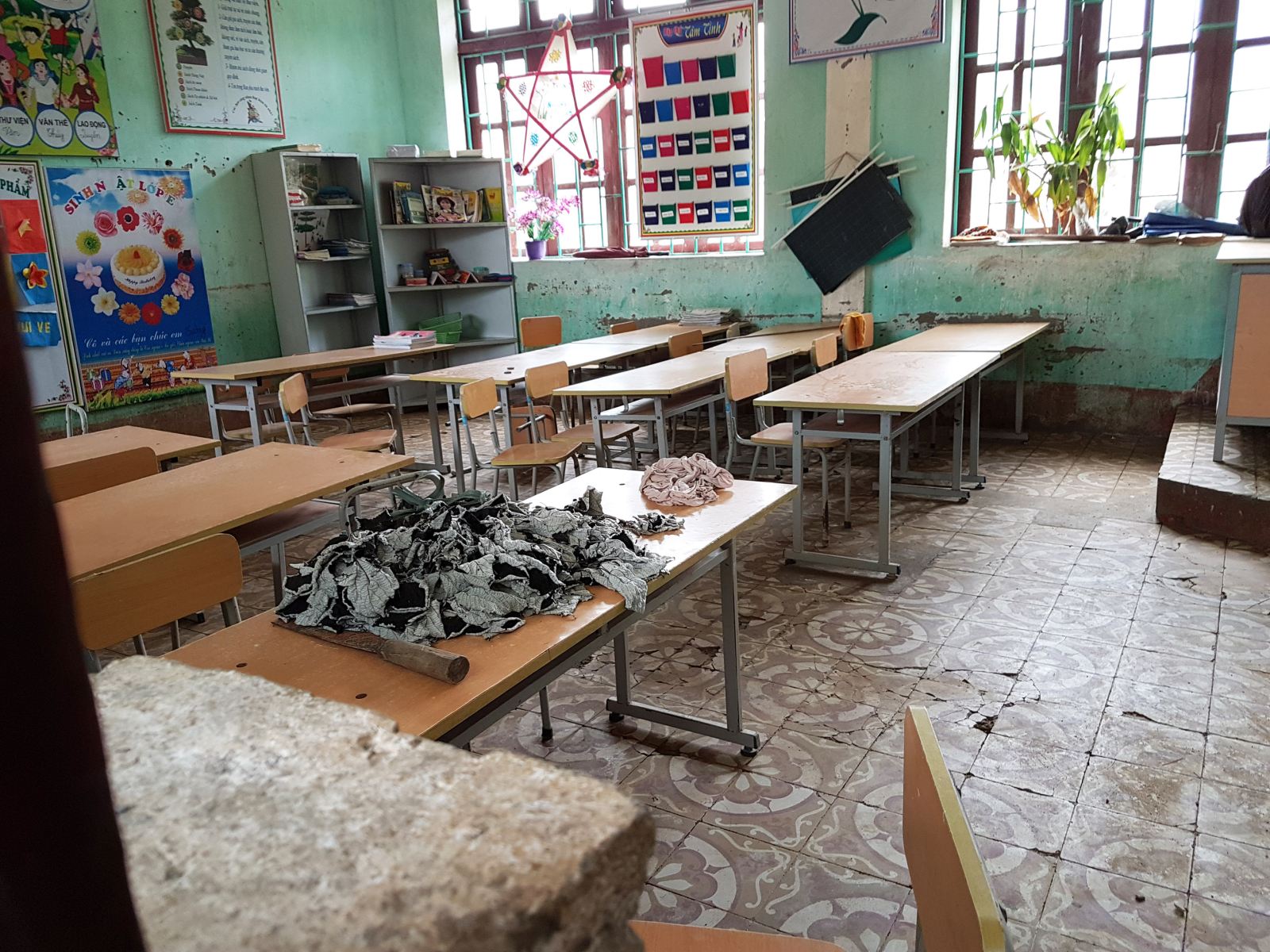 Thuan Hoa commune, Vi Xuyen district, Ha Giang province is one of the most damaged. Mr. Vi Quoc Trung, president of Thuan Hoa People’s committee said: “The flood damaged up to 263 houses, 53 of which were severely destroyed and caused severe catastrophe to property and plantation. The B primary school also bore the heavy destruction. High level of water and mud caused walls to collapse; two rooms were subsided, walls of dormitory were unsafely cracked and unusable. Teaching facilities were completely destroyed.