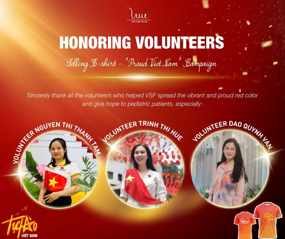 For Vietnamese Stature Foundation (VSF) would like to sincerely thank our passionate volunteers who have helped spread the spirit of the selling T-shirt "Proud Viet Nam" campaign. A special thank you to these three outstanding volunteers:
