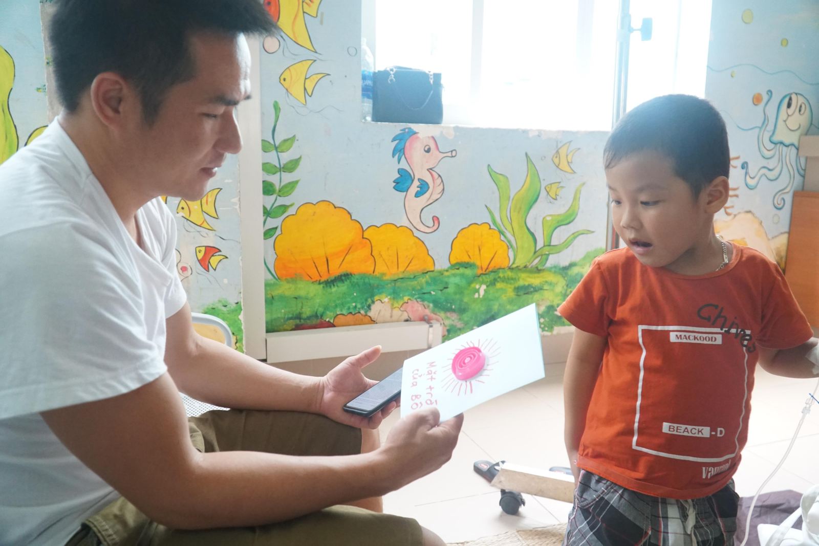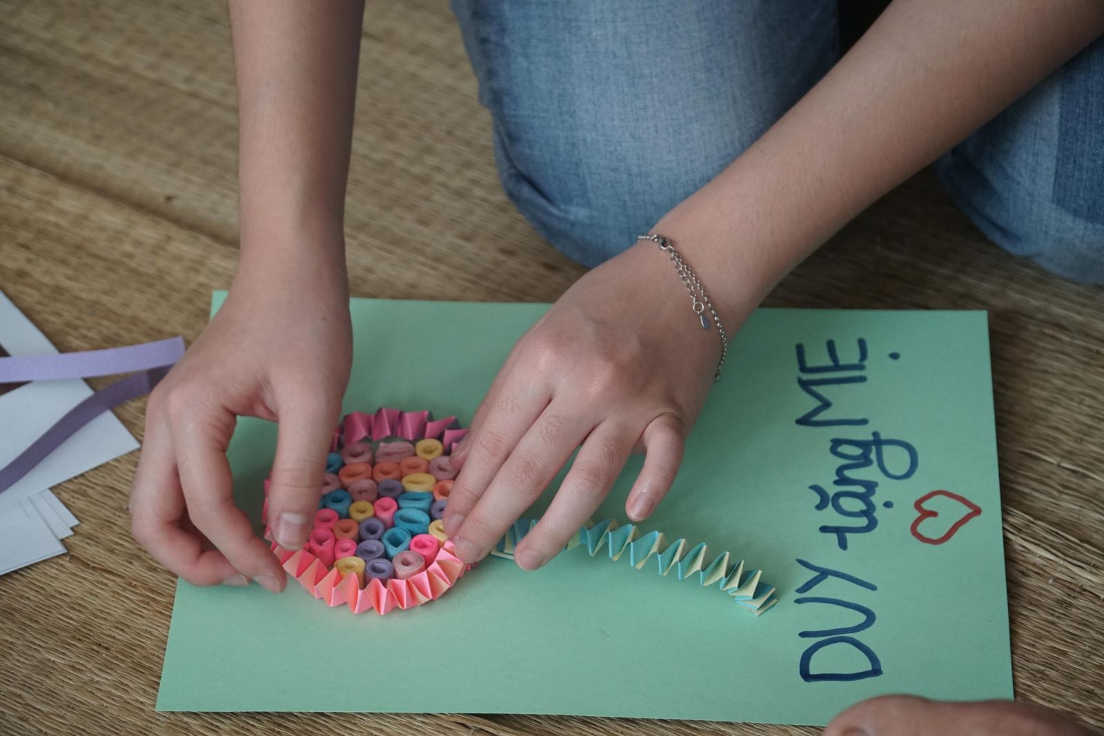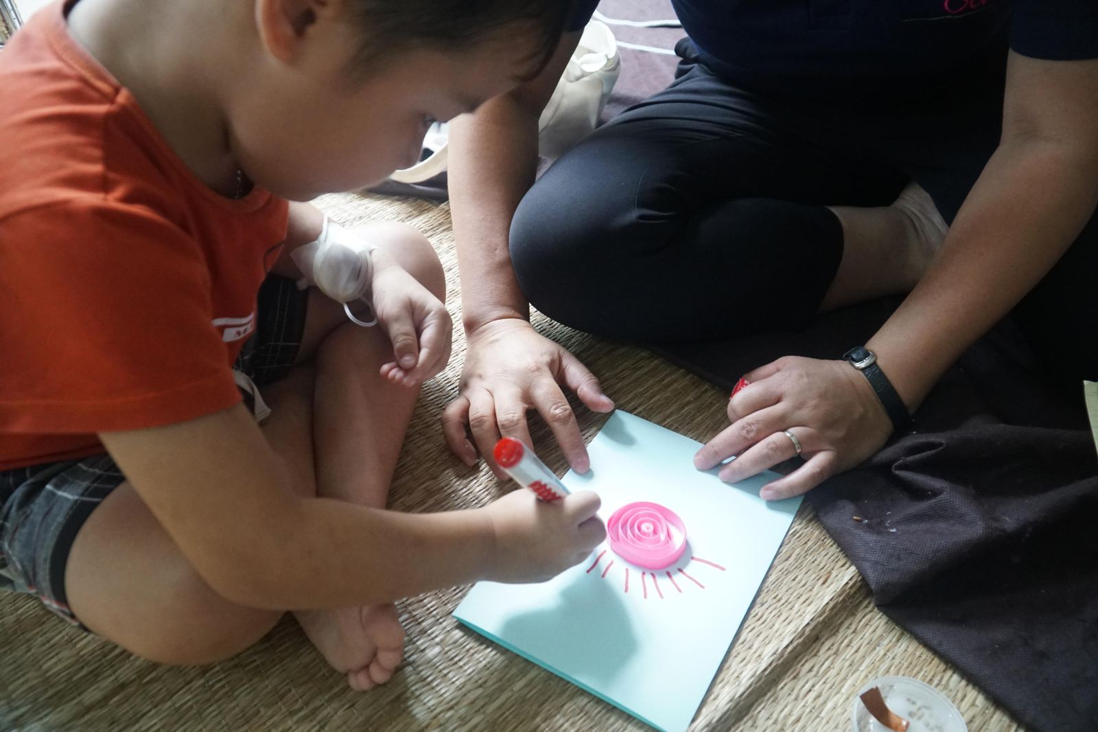 Under the guidance of students from TH School - Hoa Lac campus, the children created many beautiful decorations for their postcard. Many vivid cards decorated with cars, butterflies, the sun, etc. were made by their little hands. The cute shapes with scribble lines that are not perfect but contain full of love. They are gifts given to the children’s mothers, grandmothers or care-givers as an expression of love. In the small space of the department, these activities is considered as a way to relax, help them temporarily forget about the treatments and have fun moments.
