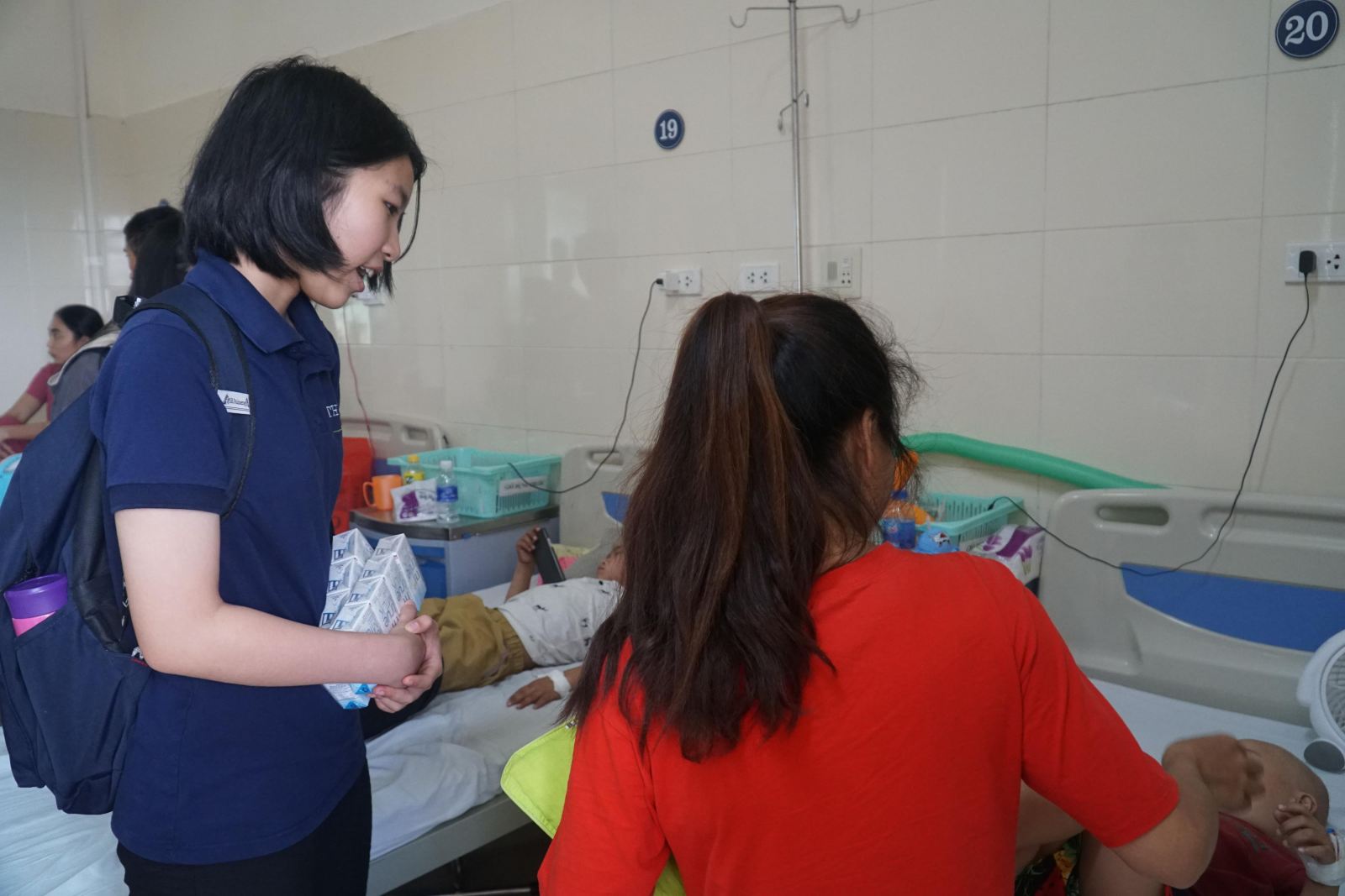 Students from TH School - Hoa Lac campus participated in giving milk to children at K Hospital, Tan Trieu with VSF