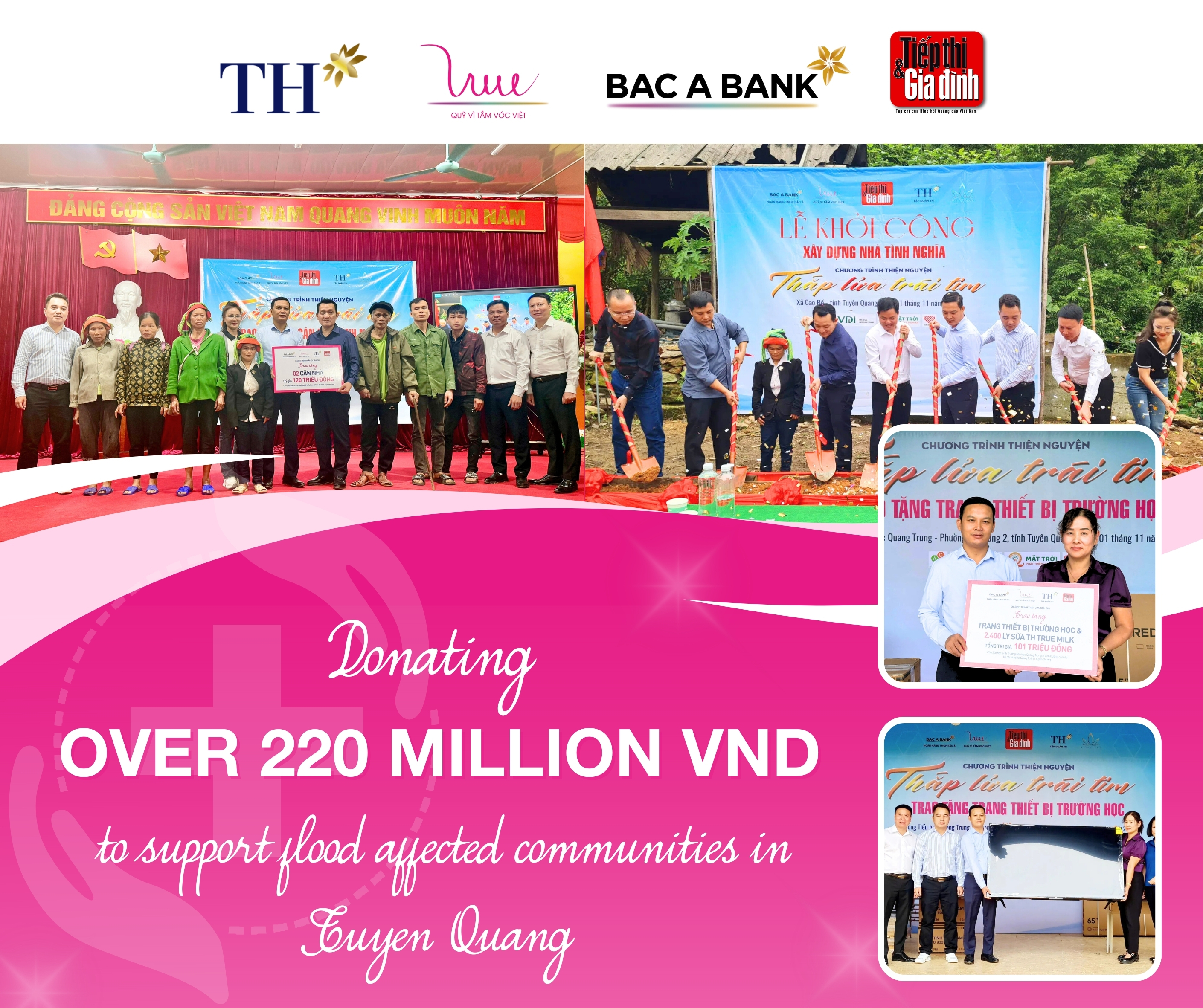 At the event, VSF and its partners donated school equipment, including computers, desks, chairs, and a television, and provided 2,400 glasses of TH true MILK to Quang Trung Primary School (Ha Giang 2 ward, Tuyen Quang province).
