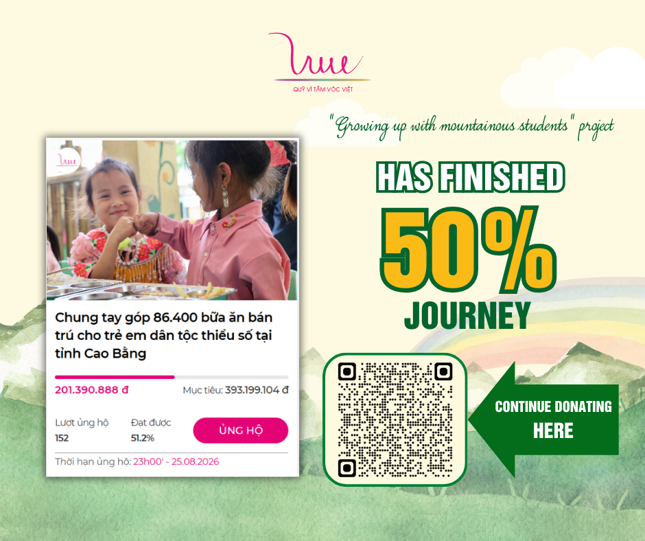 Up to present, the "Growing up with mountainous students" project has raised 201,390,888 VND, accounting for 51.2% of the fundraising goal. Every contribution, big or small, is a piece of love that helps 240 ethnic minority children in Cao Bang eat well every day and grow up with care.