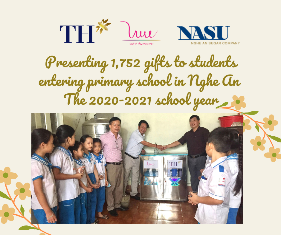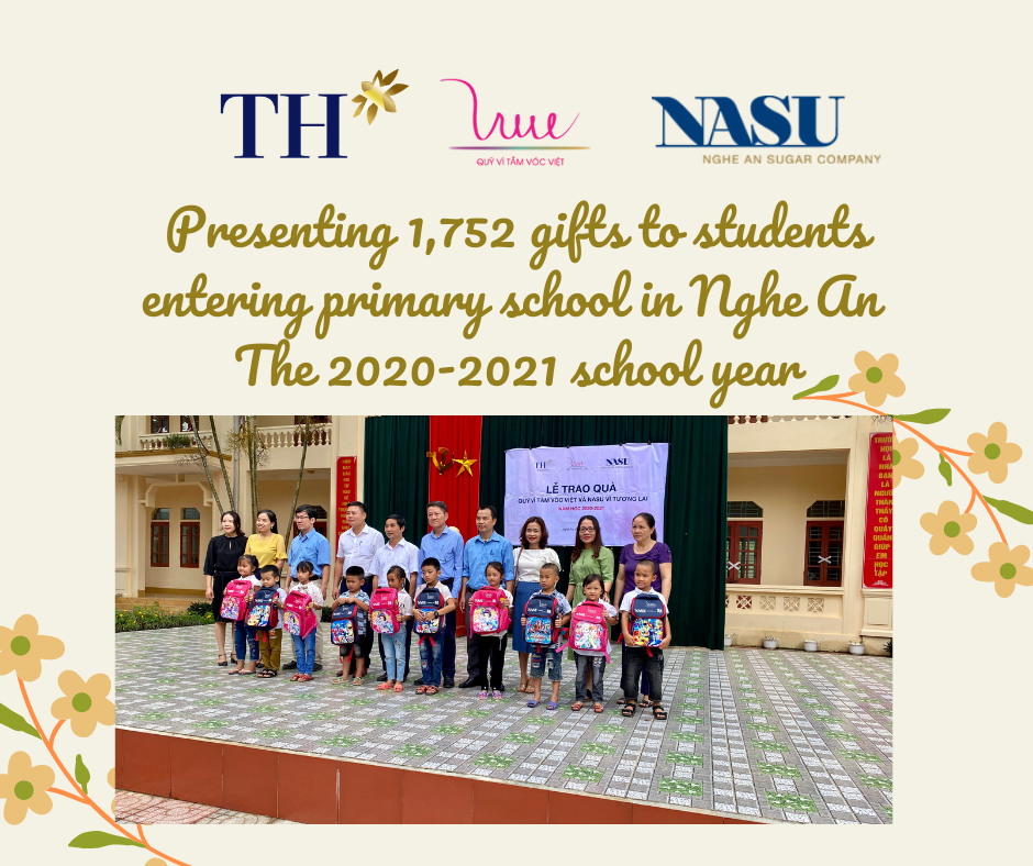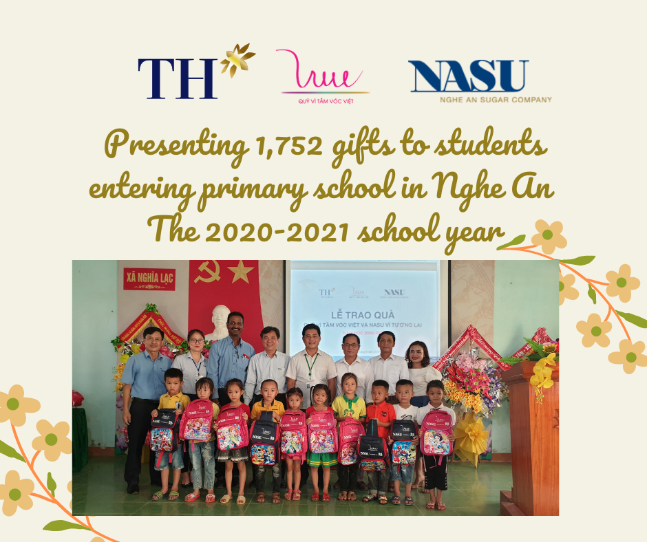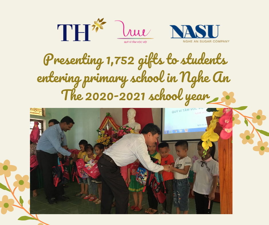 For Vietnamese Stature Foundation (VSF) cooperated with Nghe An Sugar Co., Ltd. (NASU) to present gifts for students entering primary school in Nghe An with a total value of 240 million VND.