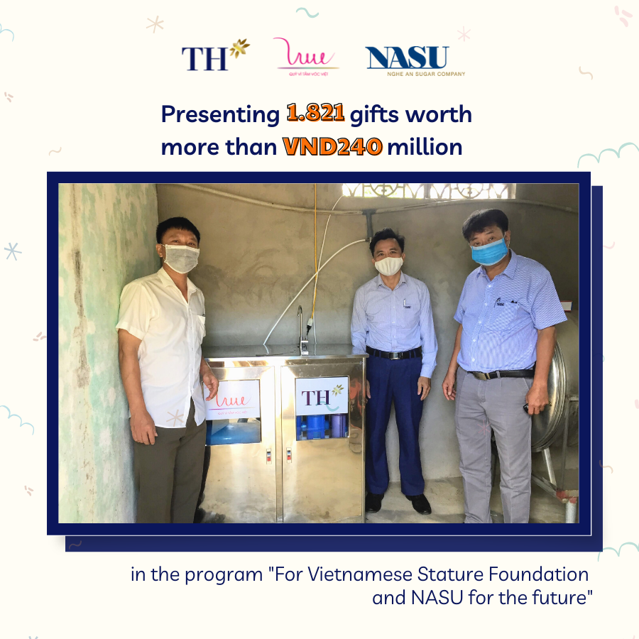 Specifically, VSF, TH Group, and NASU awarded 1,821 gifts, including 1 anti-hunchback backpack, 1 set of school supplies for grade 1 students in 19 schools in 5 districts: Quy Hop, Quy Chau, Que Phong, Nghia Dan, and Quynh Luu, and also gave 03 water filters to 03 schools with difficult circumstances at Nghia Yen Primary School, Nghia Tho Primary School (Nghia Dan District) and Tho Hop Primary School (Quy Hop District).