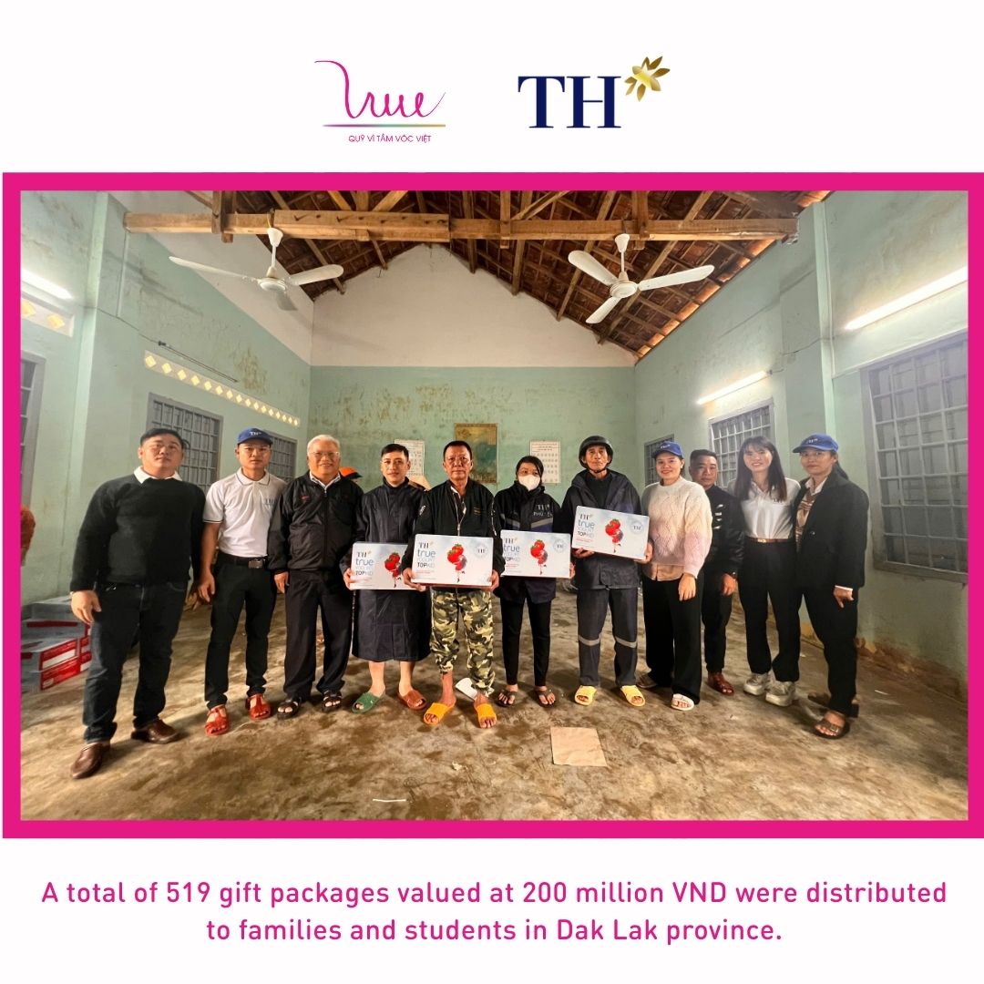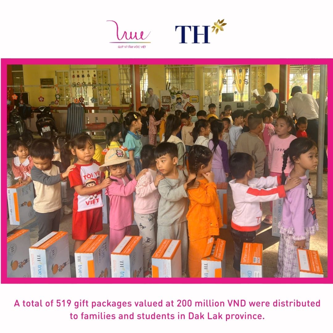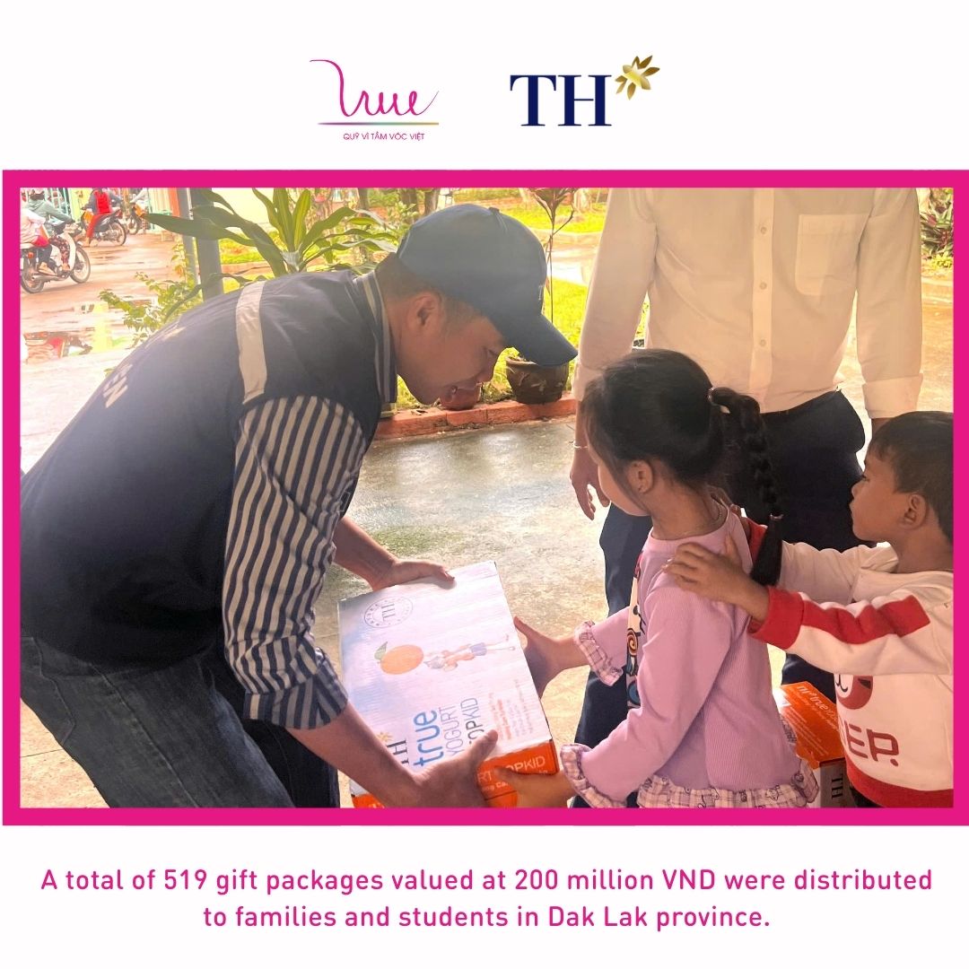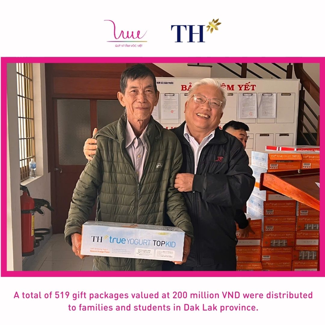 Meanwhile, in Dak Lak province (formerly Phu Yen), VSF and Phu Yen High-Tech Dairy Farm Company Limited delivered 519 gift packages, each including one carton of TH true MILK, to households and students in Xuan Phuoc, Dong Xuan, Xuan Hoa, and Van Hoa communes. The total value of this support amounted to VND 200 million.