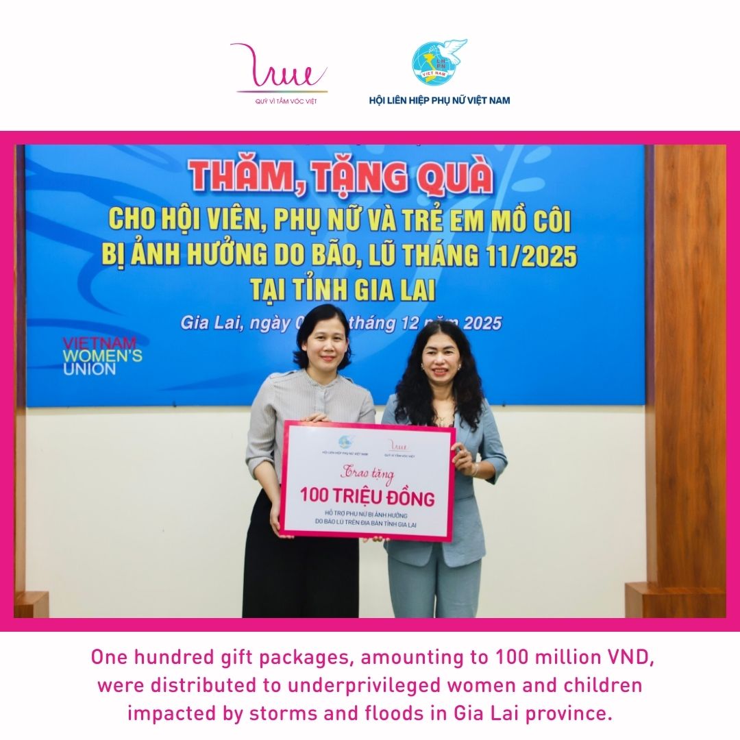 In Gia Lai, VSF, in coordination with the Gia Lai Provincial Women’s Union, delivered 100 support packages, each consisting of VND 1 million in cash, with a total value of VND 100 million, to women in difficult circumstances in areas affected by storms and floods. This activity was implemented under the campaign “Support people affected by natural disasters and floods in 2025” launched by VSF.