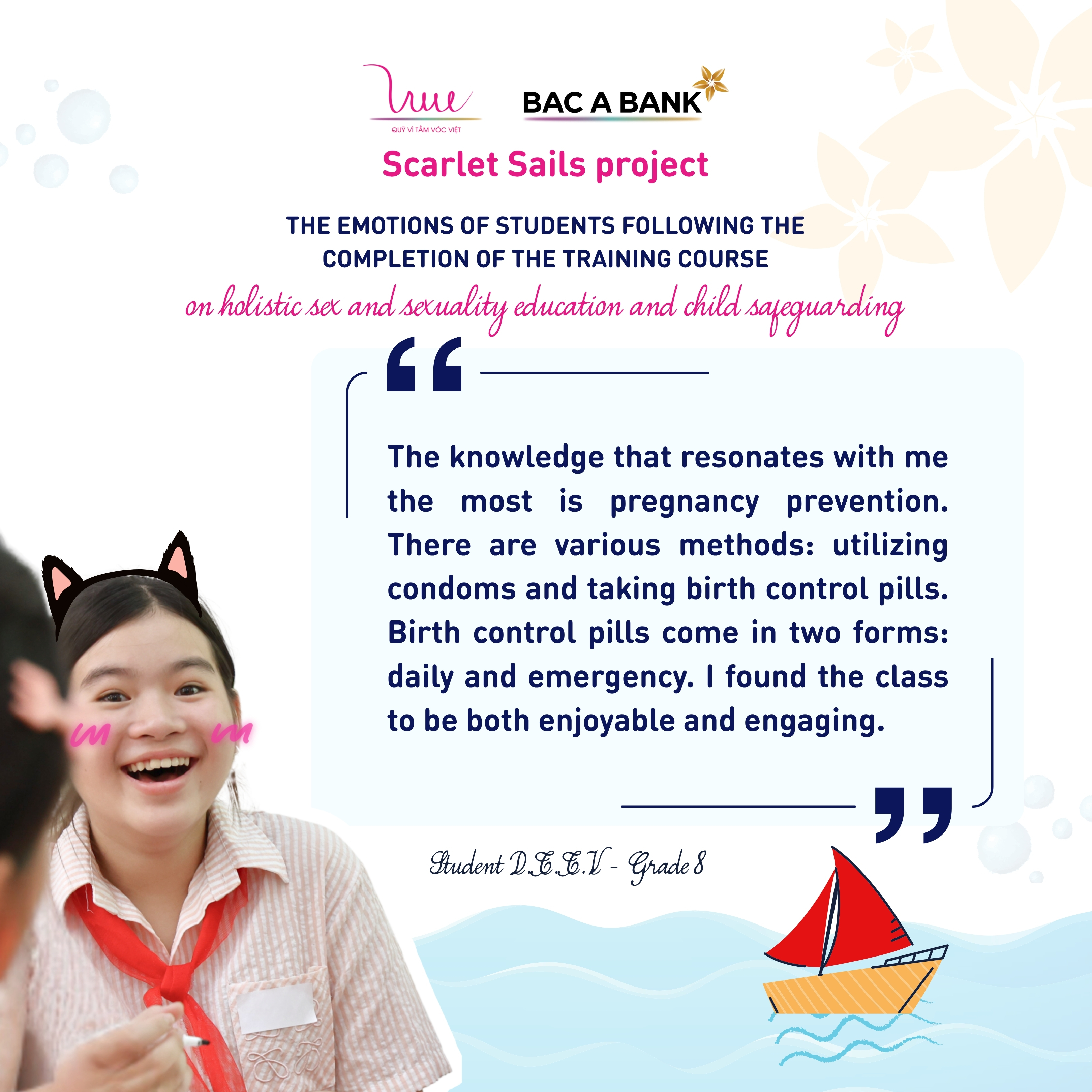 “Useful,” “interesting,” and “fun” were the keywords we heard most often in the feedback from young participants. Many shared that it was the first time they learned about concepts of gender, sexuality, or personal care; and the first time they received clear and comprehensive explanations about contraception and how to recognize sexually transmitted infections.