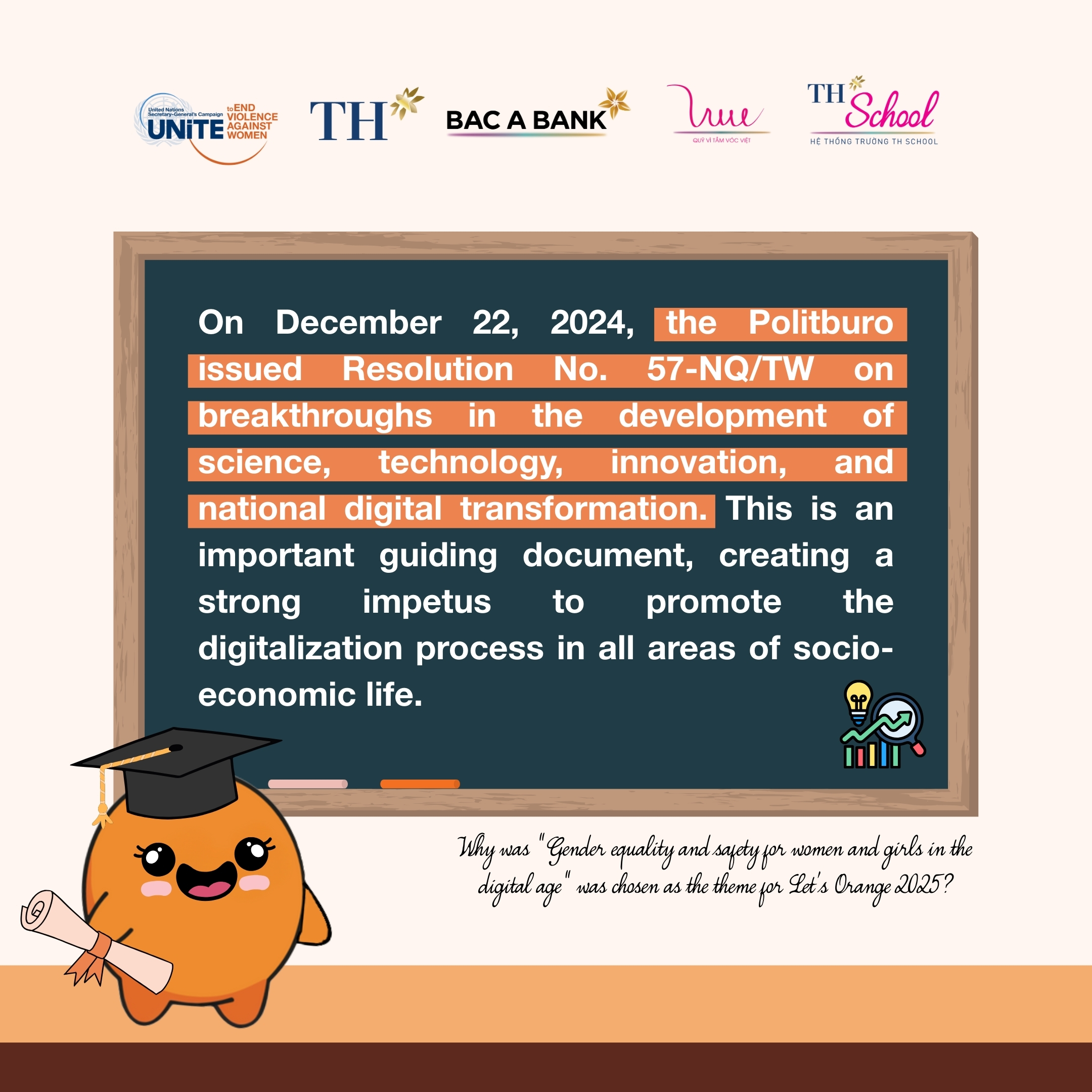 According to information shared by Professor Orange, on December 22, 2024, the Politburo issued Resolution No. 57-NQ/TW on breakthroughs in the development of science, technology, innovation, and national digital transformation. This is a key guiding document that encourages digital development in all areas of social and economic life