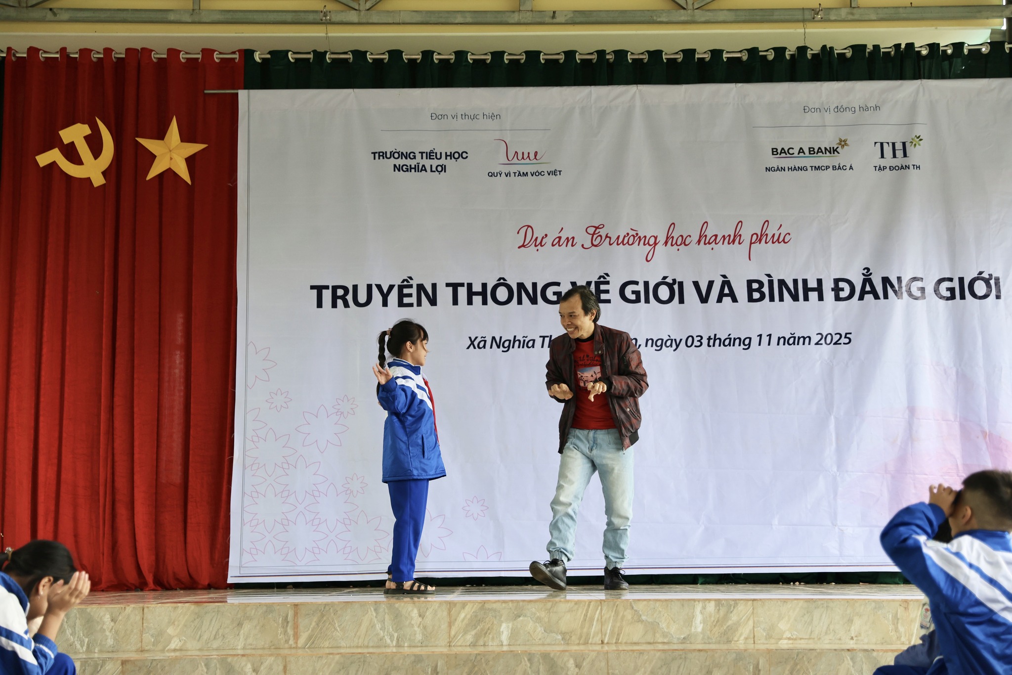 Điểm nhấn của buổi sáng là trò chơi “Nặn tượng người”, nơi các nhóm học sinh cùng sáng tạo nên những “bức tượng sống” mô tả hành động biết lắng nghe, tôn trọng và bảo vệ người khác. Một “công xưởng tượng người” đã được toàn bộ học sinh Trường Tiểu học Nghĩa Lợi tạo ra nhằm lan tỏa thông điệp: Bình đẳng bắt đầu từ sự thấu hiểu và yêu thương.