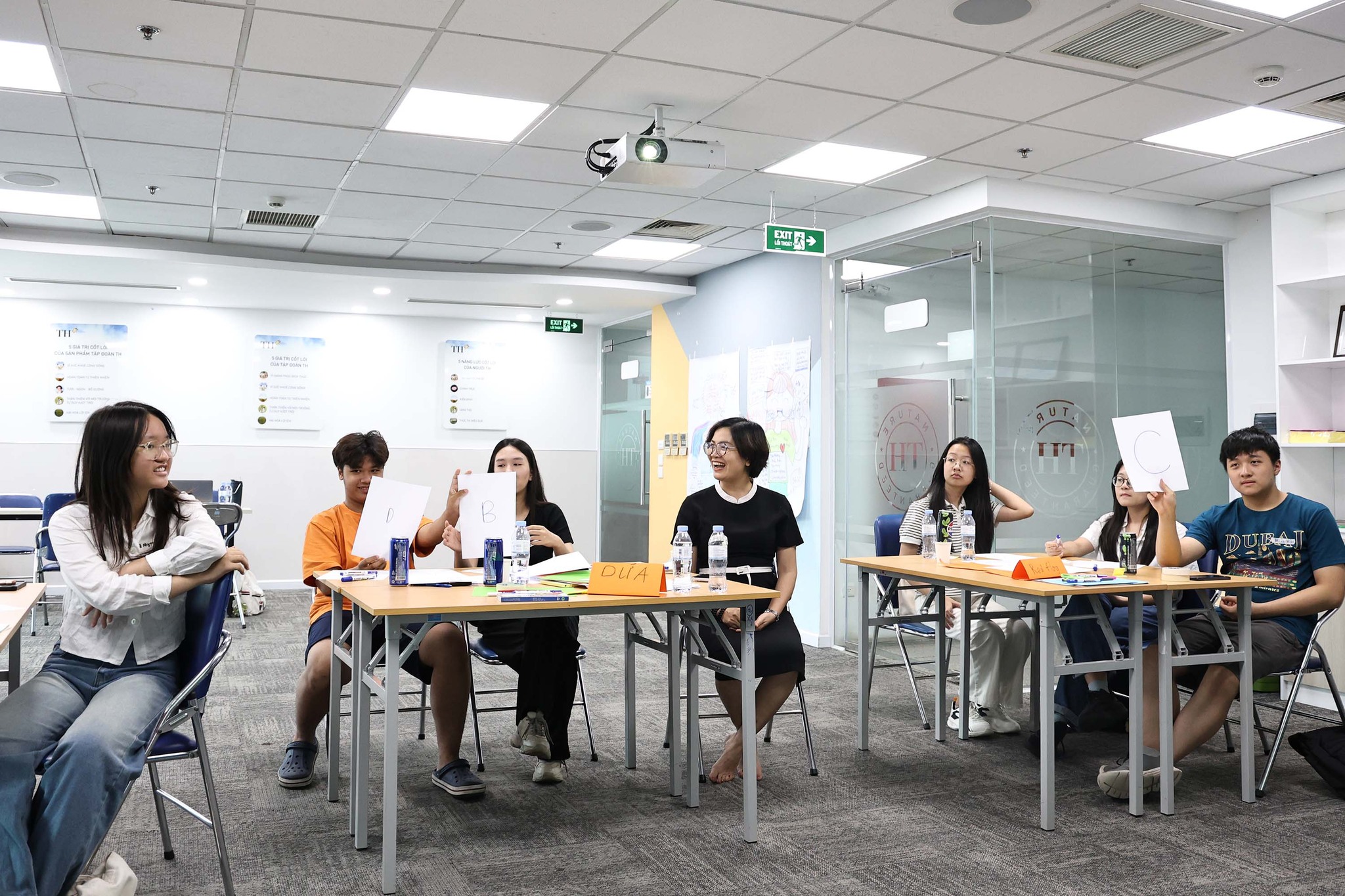 Không chỉ học kiến thức, các bạn còn được nhập vai, giải quyết tình huống thực tế, rèn luyện kỹ năng điều phối hoạt động, thuyết trình, làm việc nhóm, và đặc biệt là lắng nghe tích cực. Từ đó, mỗi bạn đều có cơ hội khám phá điểm mạnh, điểm yếu của bản thân, để tự tin đảm nhận vai trò phù hợp trong những “hành trình” tiếp theo.