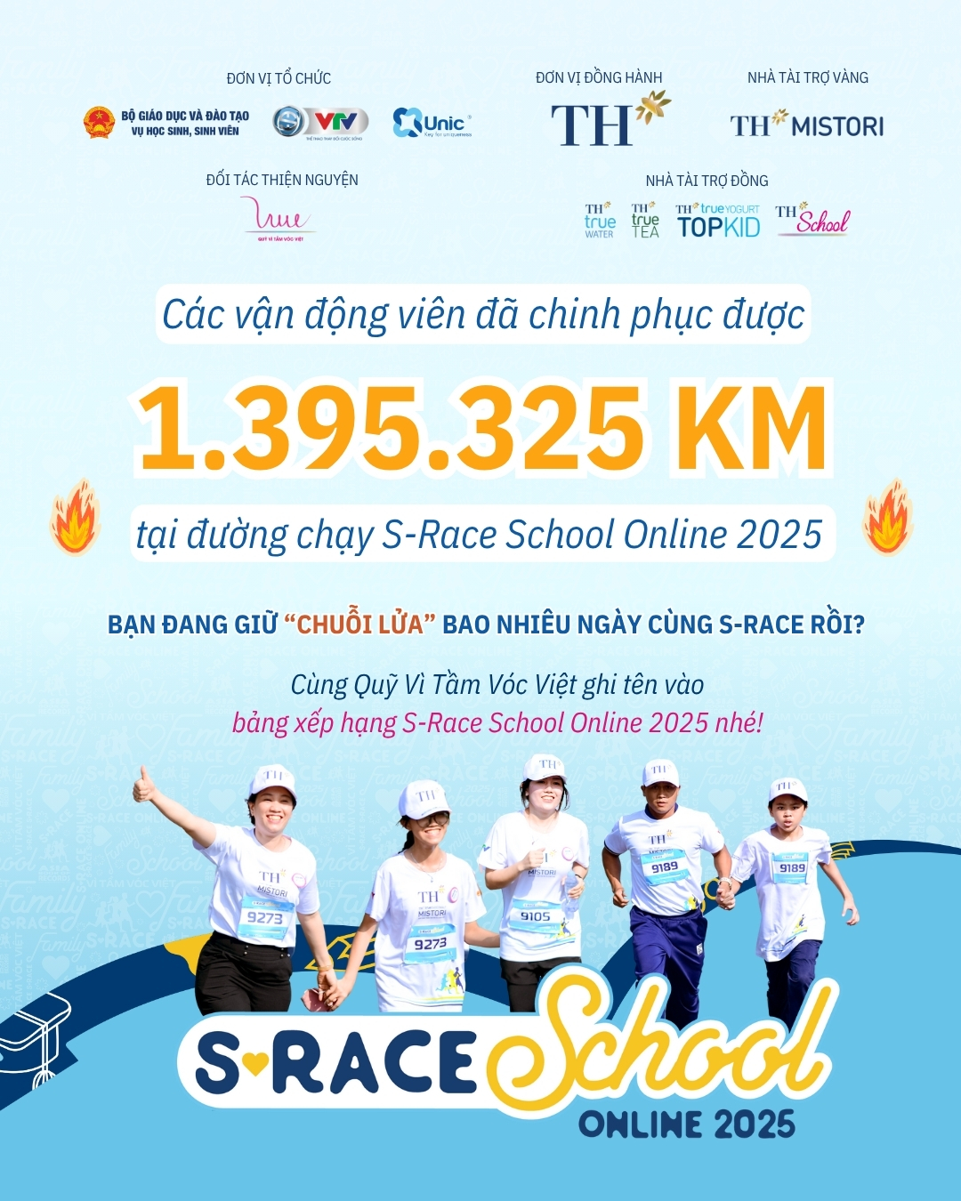 Bạn đã ghi được bao nhiêu km rồi, S-Race School Online 2025 sẽ tiếp tục cập nhật bảng xếp hạng cá nhân và trường học ở các tuần tiếp theo, vậy nên đừng để streak của bạn “nguội” nhé! Giữ lửa, bứt tốc và lan tỏa năng lượng thể thao học đường cùng hàng nghìn học sinh trên khắp cả nước.