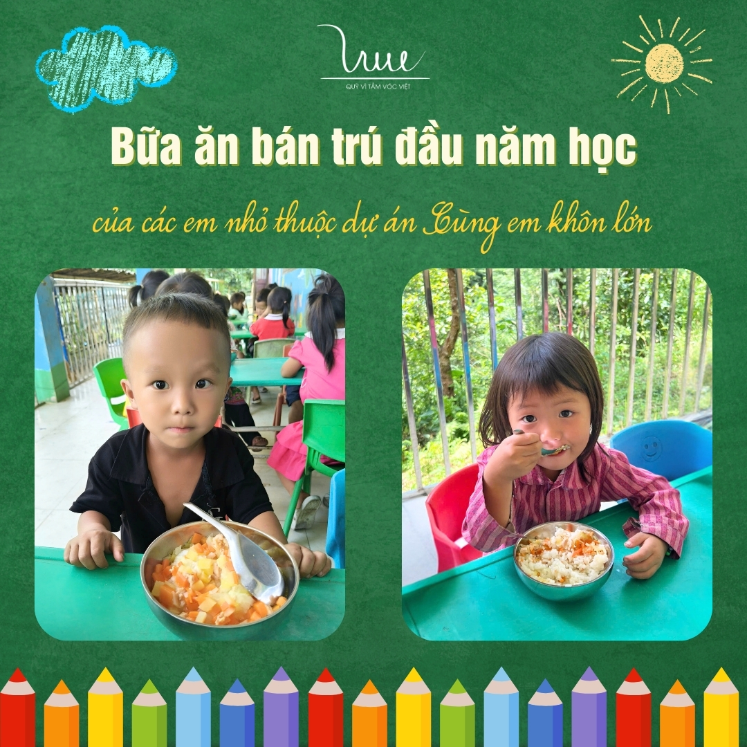 Nhờ sự chung tay của những nhà bảo trợ, dự án “Cùng em khôn lớn” đã gây quỹ thành công và bắt đầu mang đến những bữa cơm bán trú nóng hổi, giàu dinh dưỡng cho 240 em nhỏ tại 6 điểm trường thuộc Trường Mầm non Thái Sơn và Thạch Lâm (tỉnh Cao Bằng).
