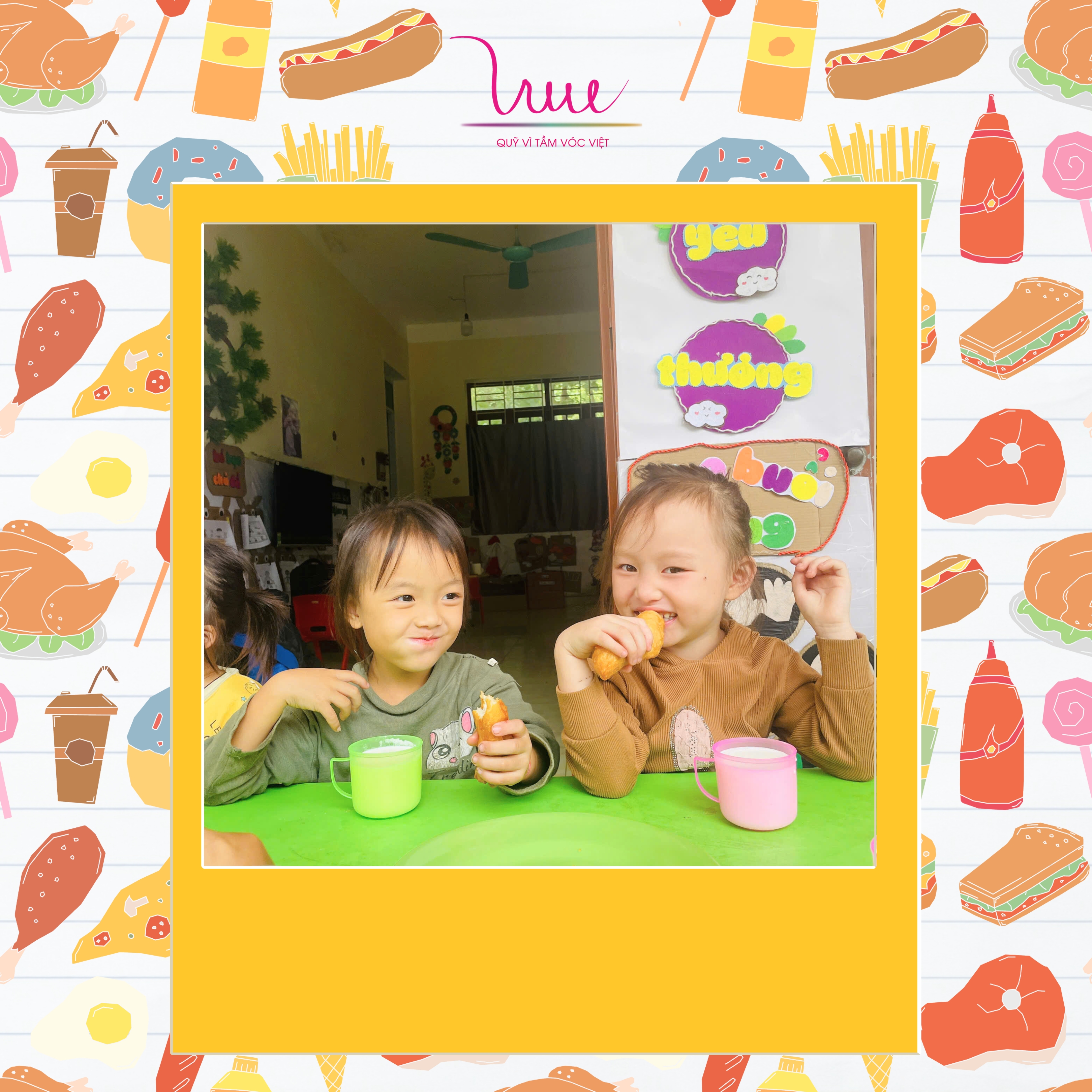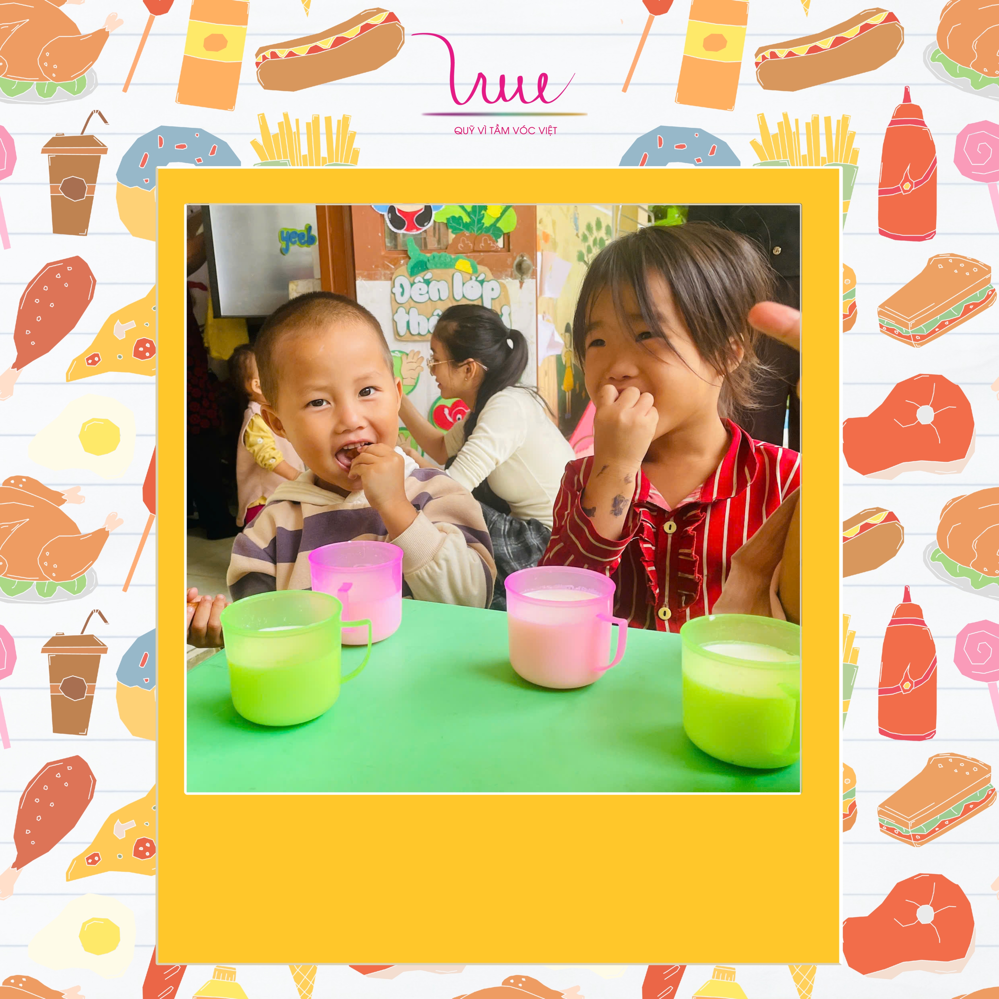 Hiểu rõ tầm quan trọng đó, Quỹ Vì Tầm Vóc Việt (VSF) luôn chú trọng triển khai bữa ăn phụ trong dự án “Cùng em khôn lớn”. Với 11.000 đồng/ngày, ngoài một bữa trưa đầy đủ dinh dưỡng với cơm, rau, cá hay thịt..., các em còn được thưởng thức một bữa phụ buổi chiều luân phiên giữa món mặn và món ngọt, như cháo, bánh bèo, bún, miến, phở, xôi, bánh ngọt, pizza, quẩy hay chè…