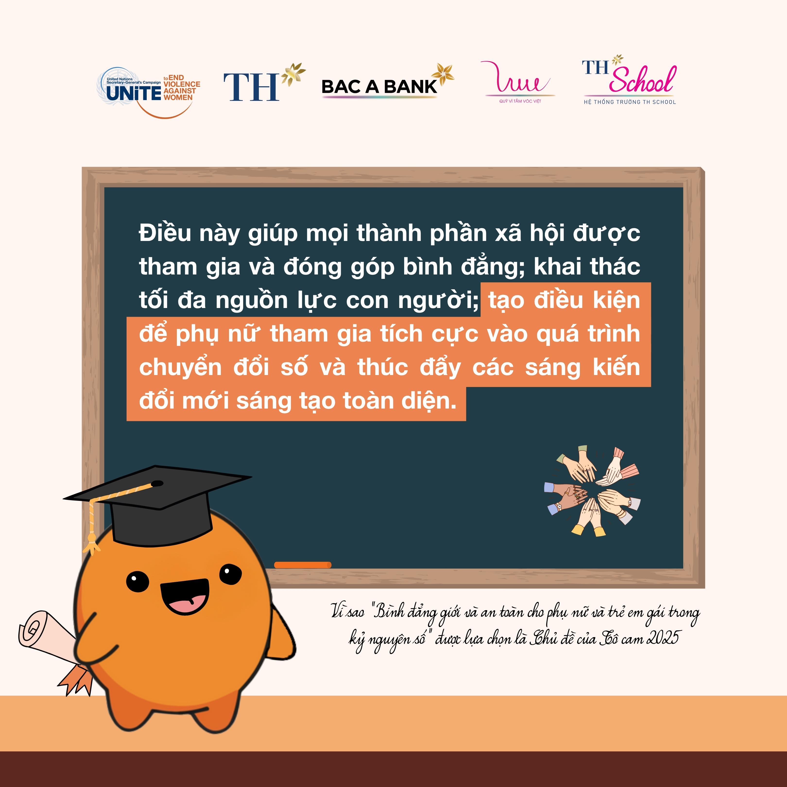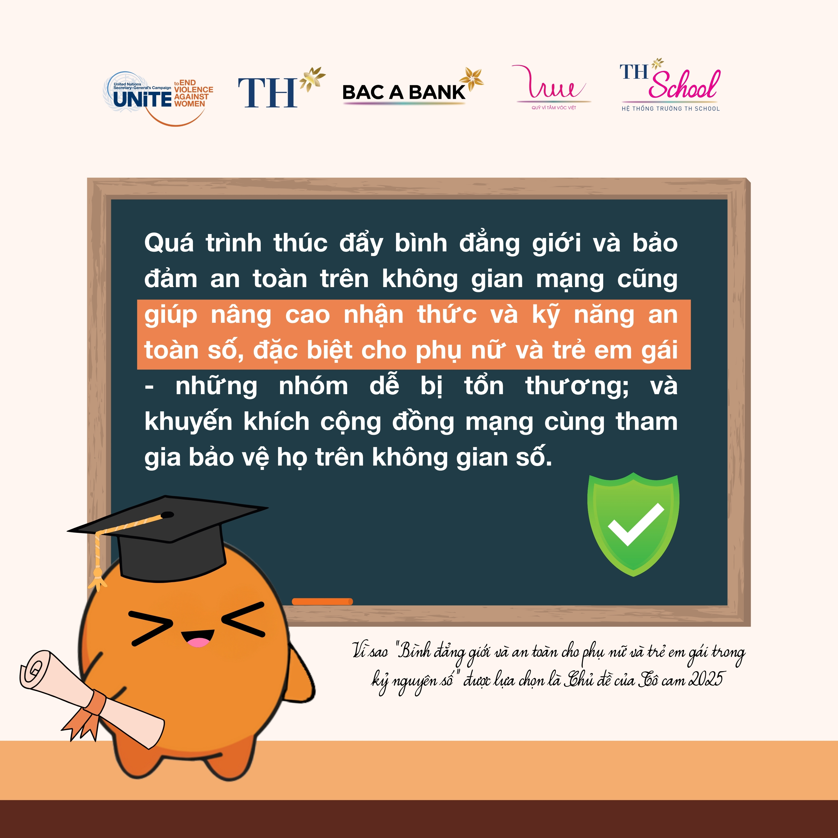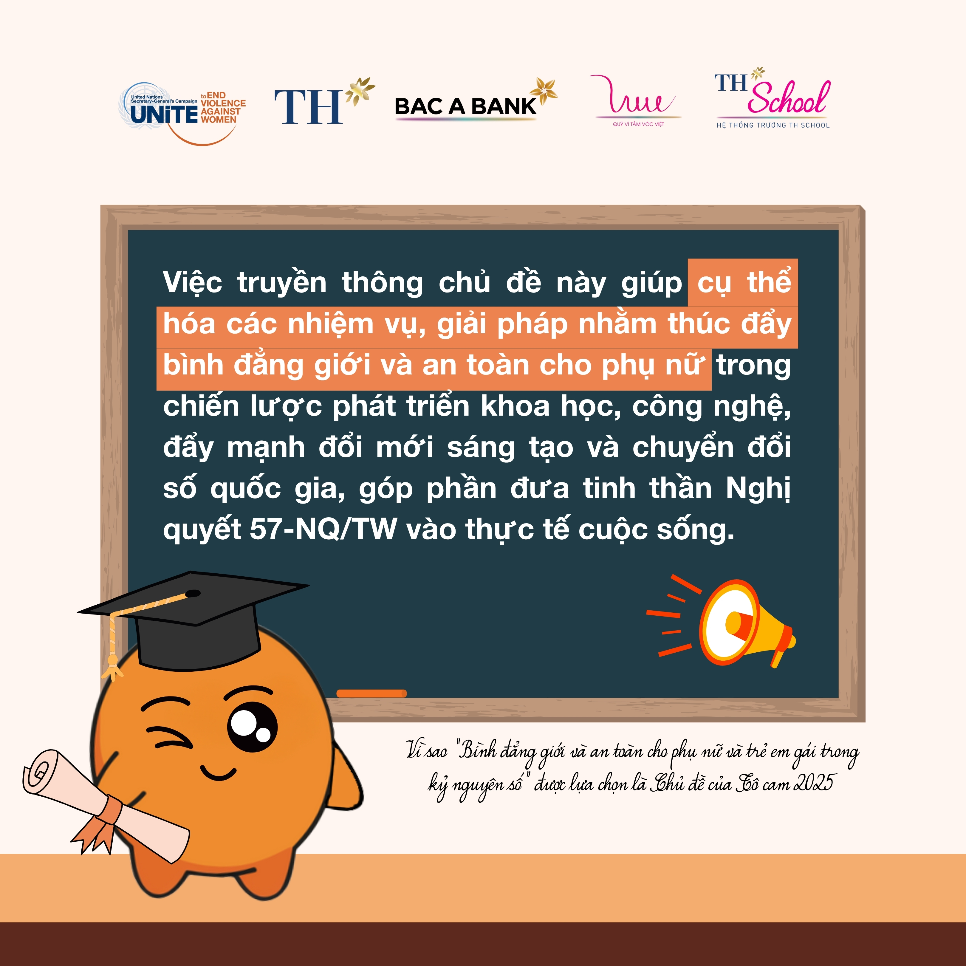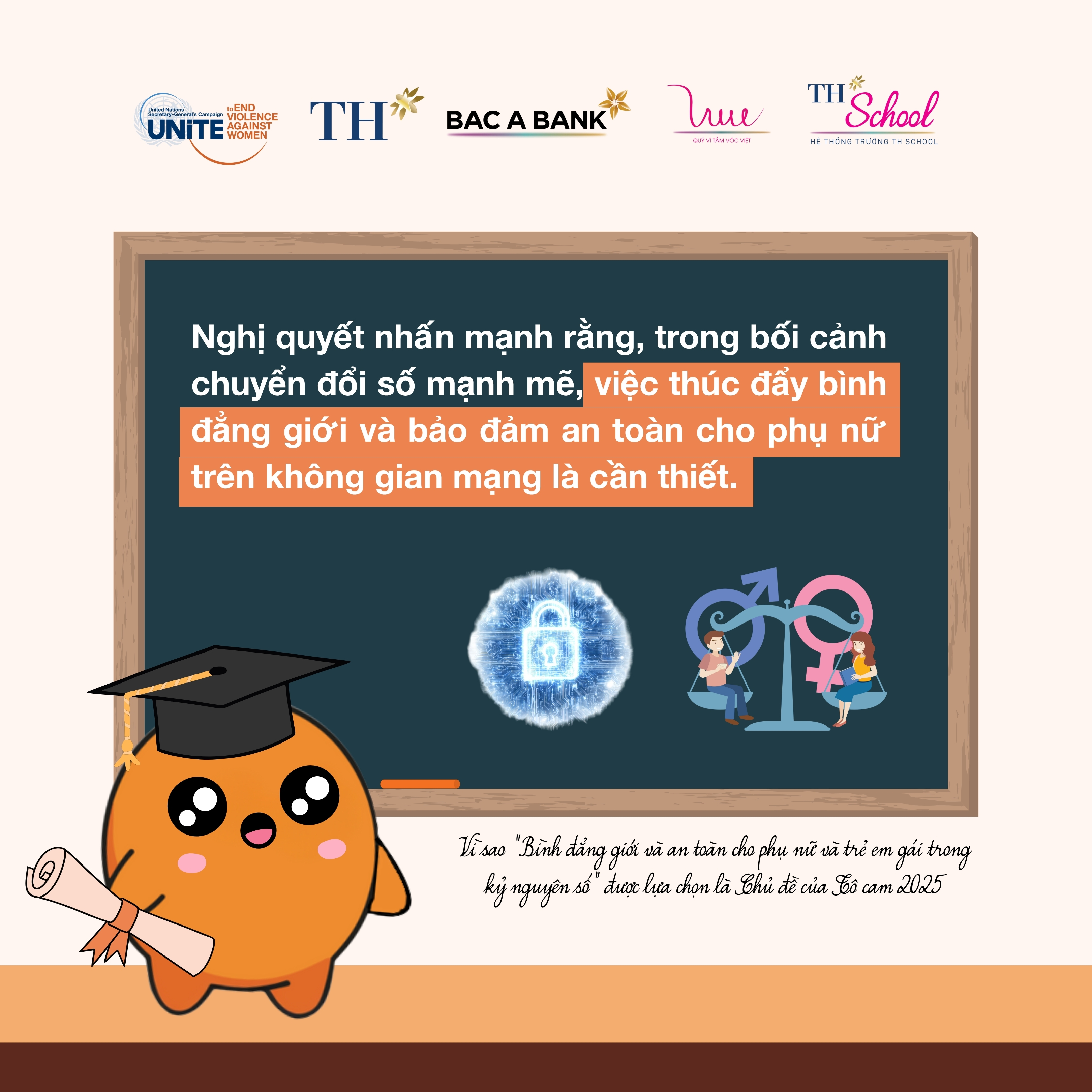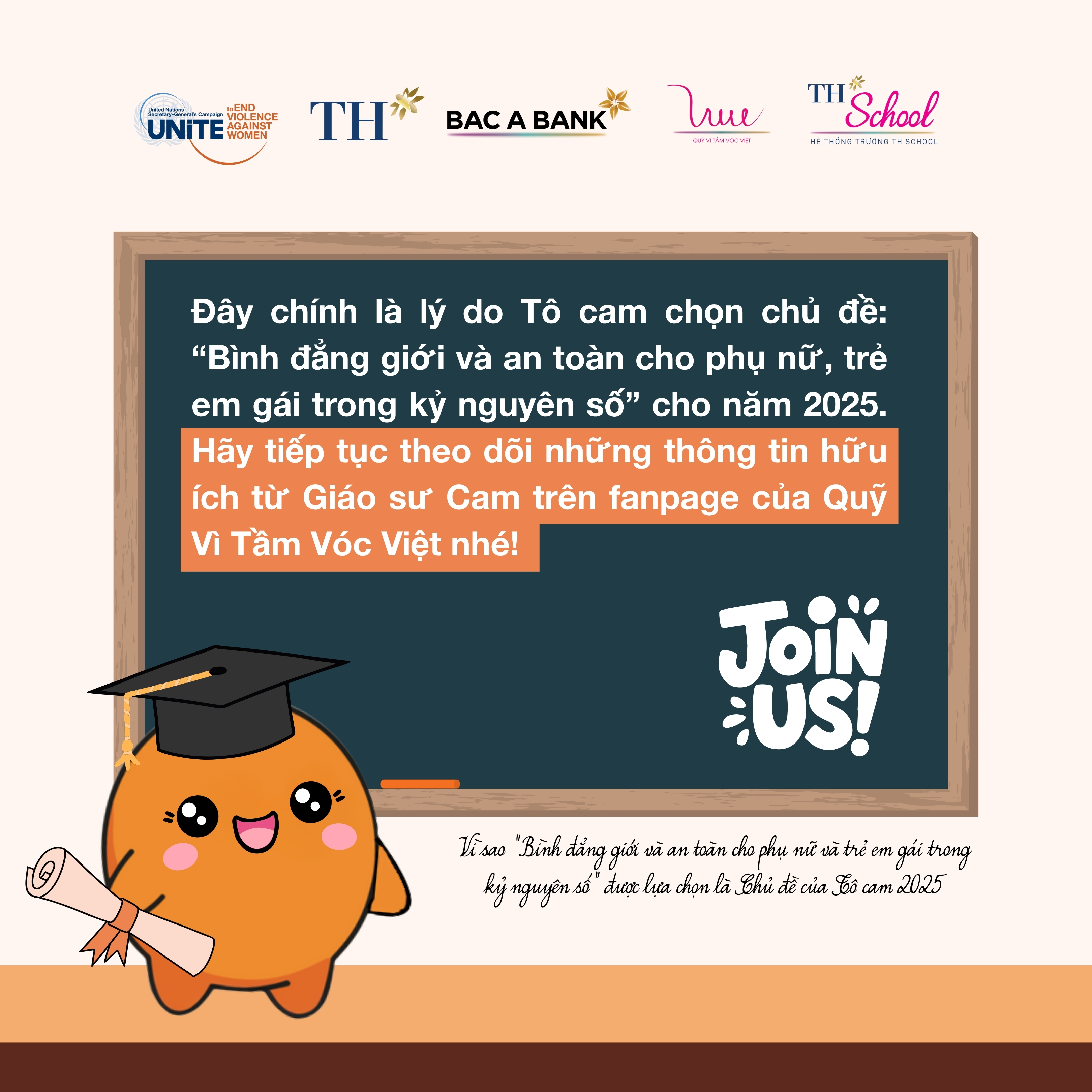Đây chính là lý do Tô cam chọn chủ đề: “Bình đẳng giới và an toàn cho phụ nữ, trẻ em gái trong kỷ nguyên số” cho năm 2025.