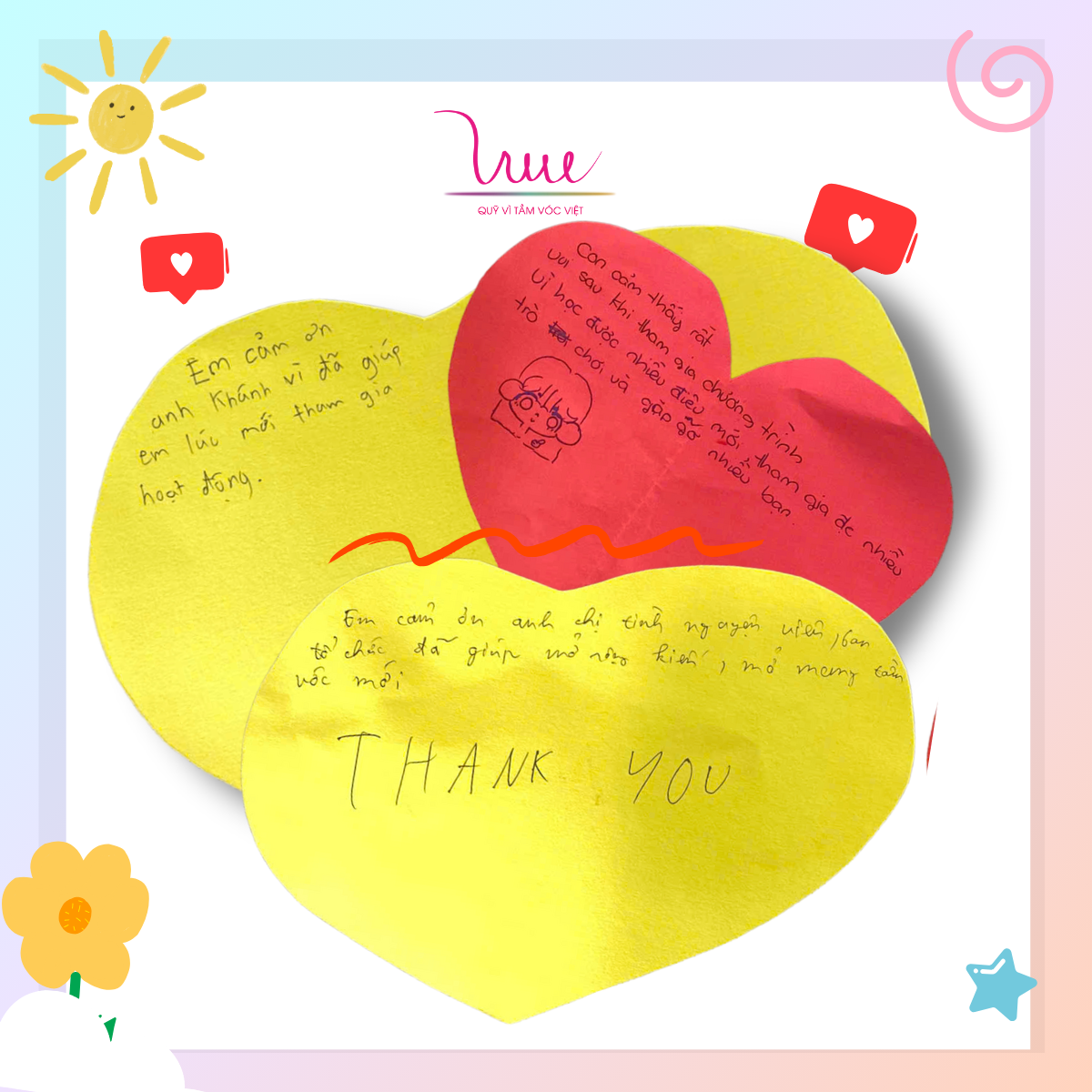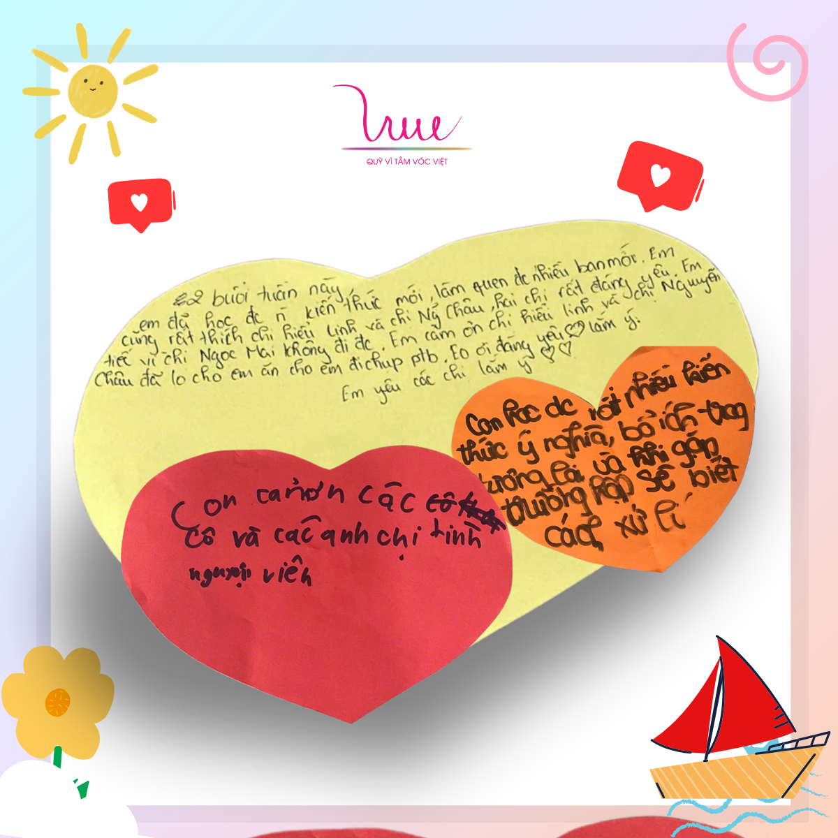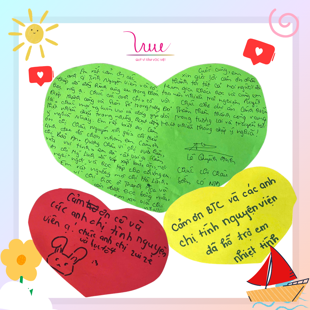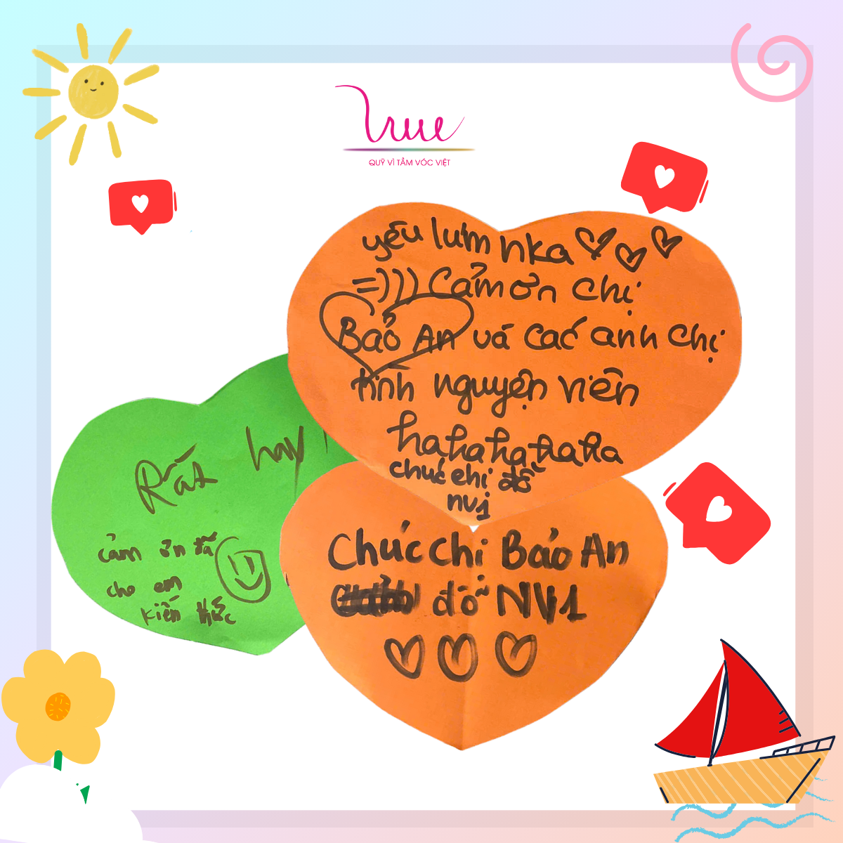 Có gì trong những trái tim các em gửi đến các giảng viên, anh chị tình nguyện viên và ban tổ chức dự án Cánh buồm đỏ thắm?