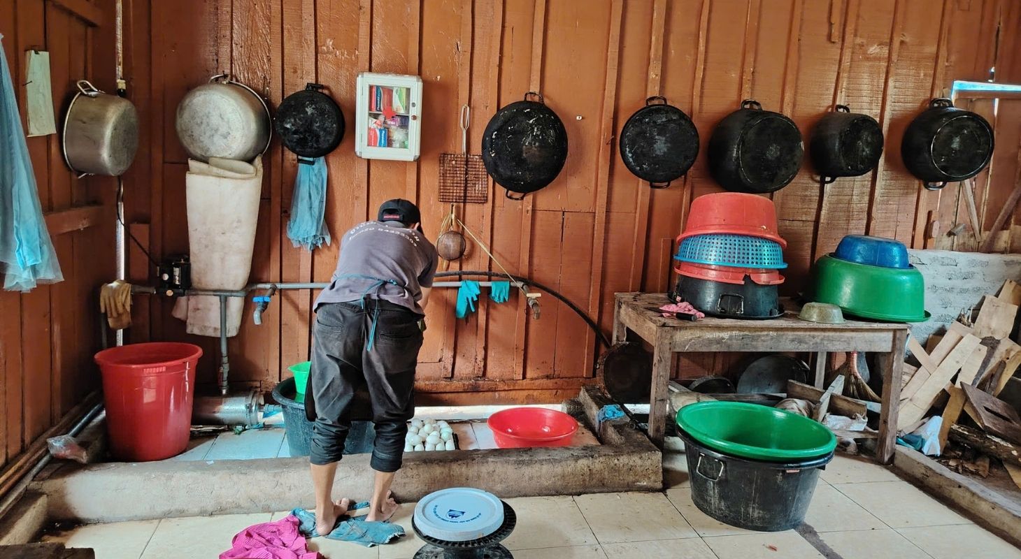 Căn bếp hiện tại của trường được cải tạo tạm từ một phòng học gỗ cũ, đơn sơ và không đảm bảo các tiêu chuẩn an toàn, đặc biệt là về phòng cháy, chữa cháy. Không gian thiếu thốn, nên nhà trường chưa thể bố trí theo mô hình bếp ăn một chiều đảm bảo vệ sinh an toàn thực phẩm.