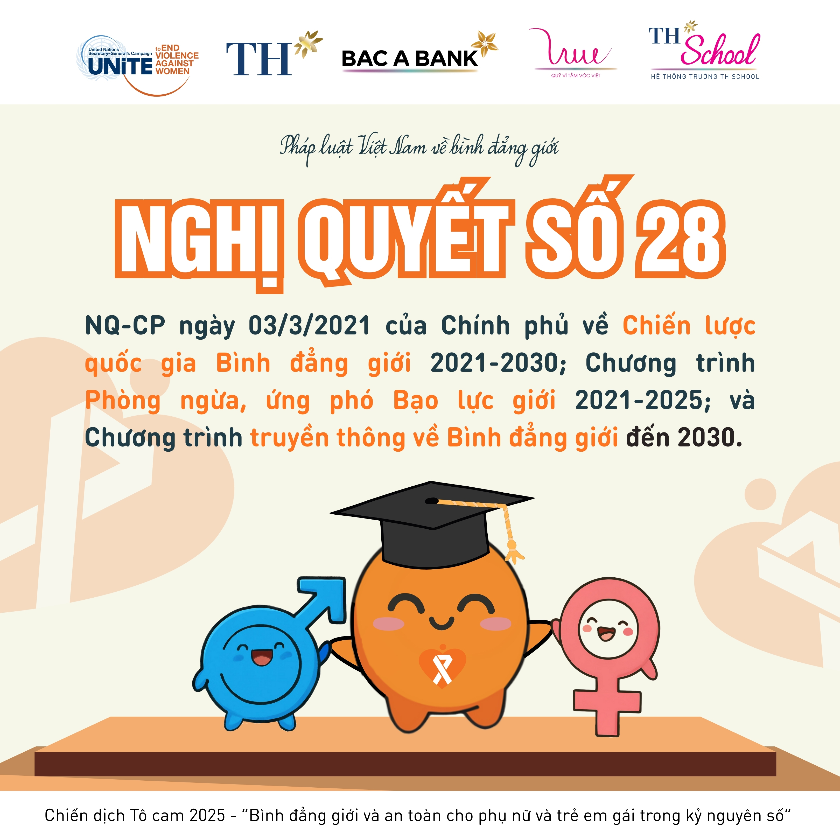 - Nghị quyết số 28/NQ-CP ngày 03 tháng 3 năm 2021 của Chính phủ về Chiến lược quốc gia về Bình đẳng giới giai đoạn 2021-2030; Chương trình Phòng ngừa - Ứng phó Bạo lực trên cơ sở giới 2021-2025; Chương trình truyền thông về Bình đẳng giới đến năm 2030;