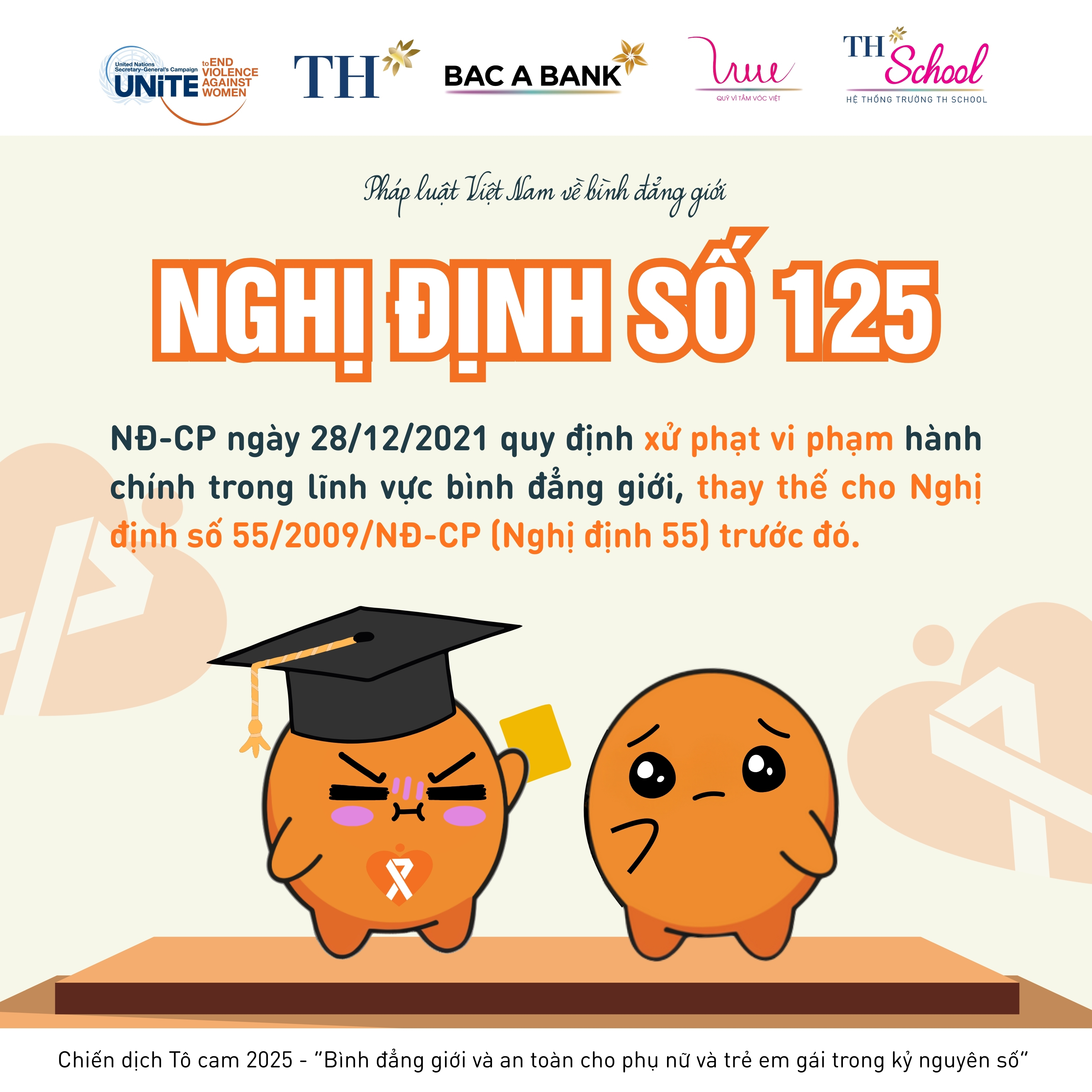 - Nghị định số 125/2021/NĐ-CP (Nghị định 125) – 28/12/2021 quy định xử phạt vi phạm hành chính trong lĩnh vực bình đẳng giới, thay thế cho Nghị định số 55/2009/NĐ-CP (Nghị định 55) trước đó;