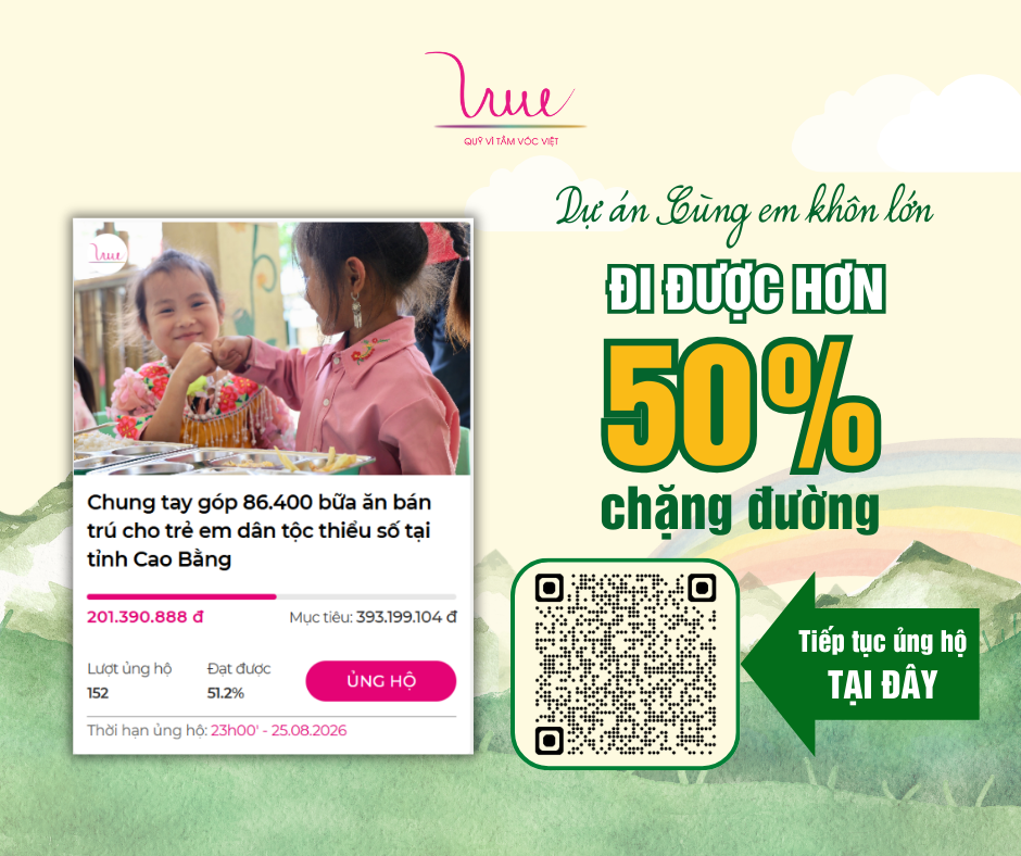 Tính đến thời điểm hiện tại, dự án “Cùng em khôn lớn” đã huy động được 201.390.888 đồng, tương đương 51,2% mục tiêu gây quỹ. Mỗi đóng góp, dù lớn hay nhỏ, đều là một mảnh ghép yêu thương, góp phần giúp 240 em nhỏ dân tộc thiểu số tại Cao Bằng được ăn ngon mỗi ngày và được lớn lên trong sự quan tâm.