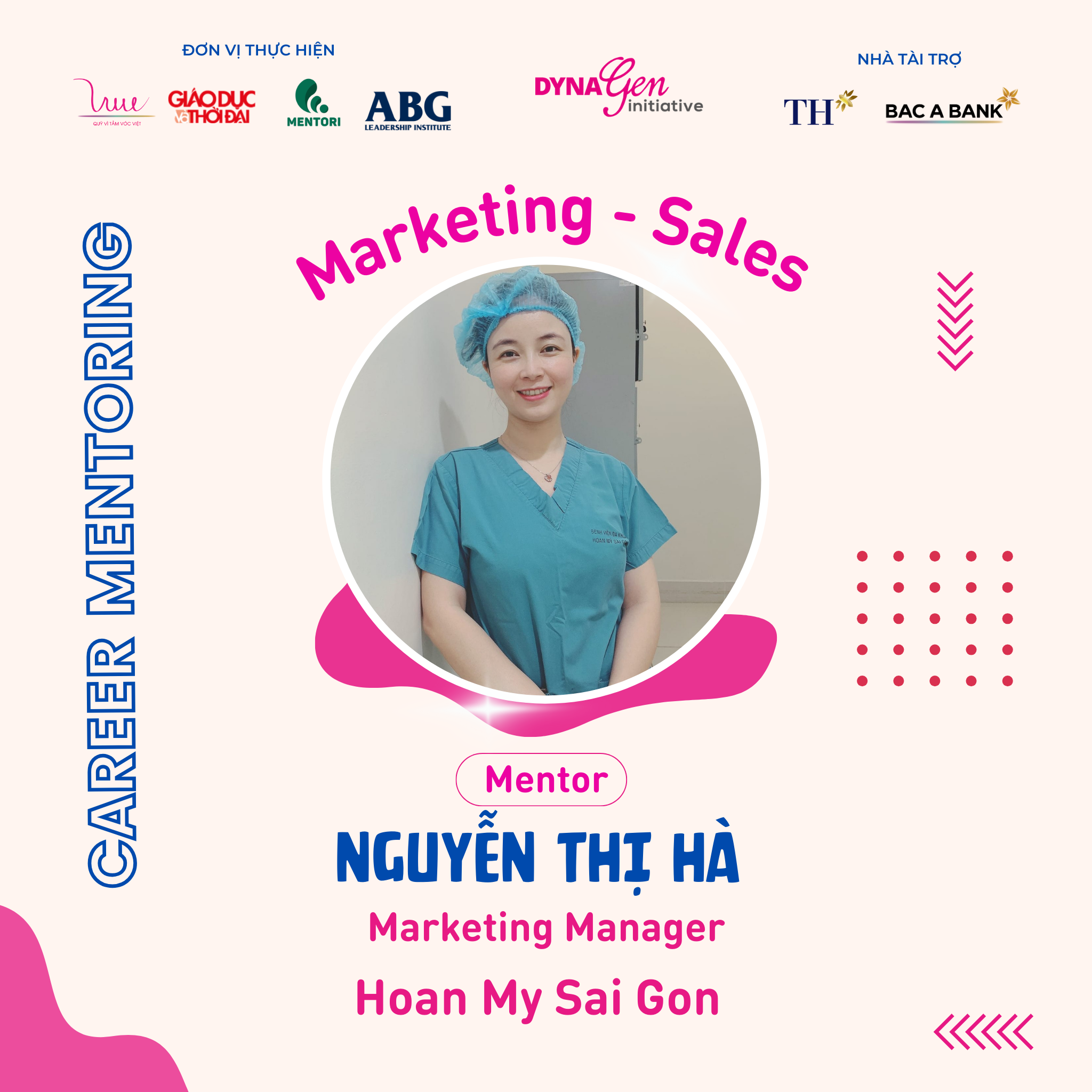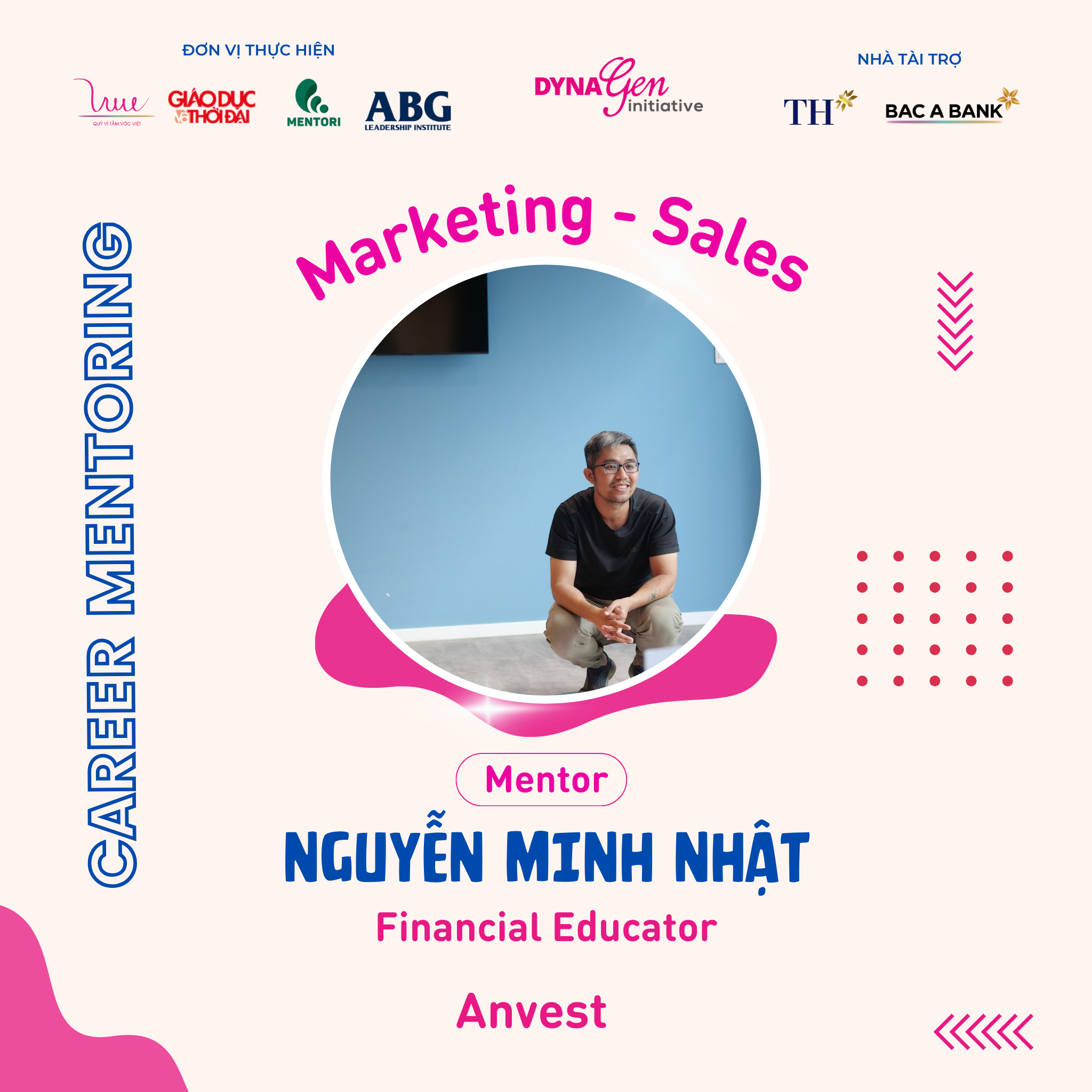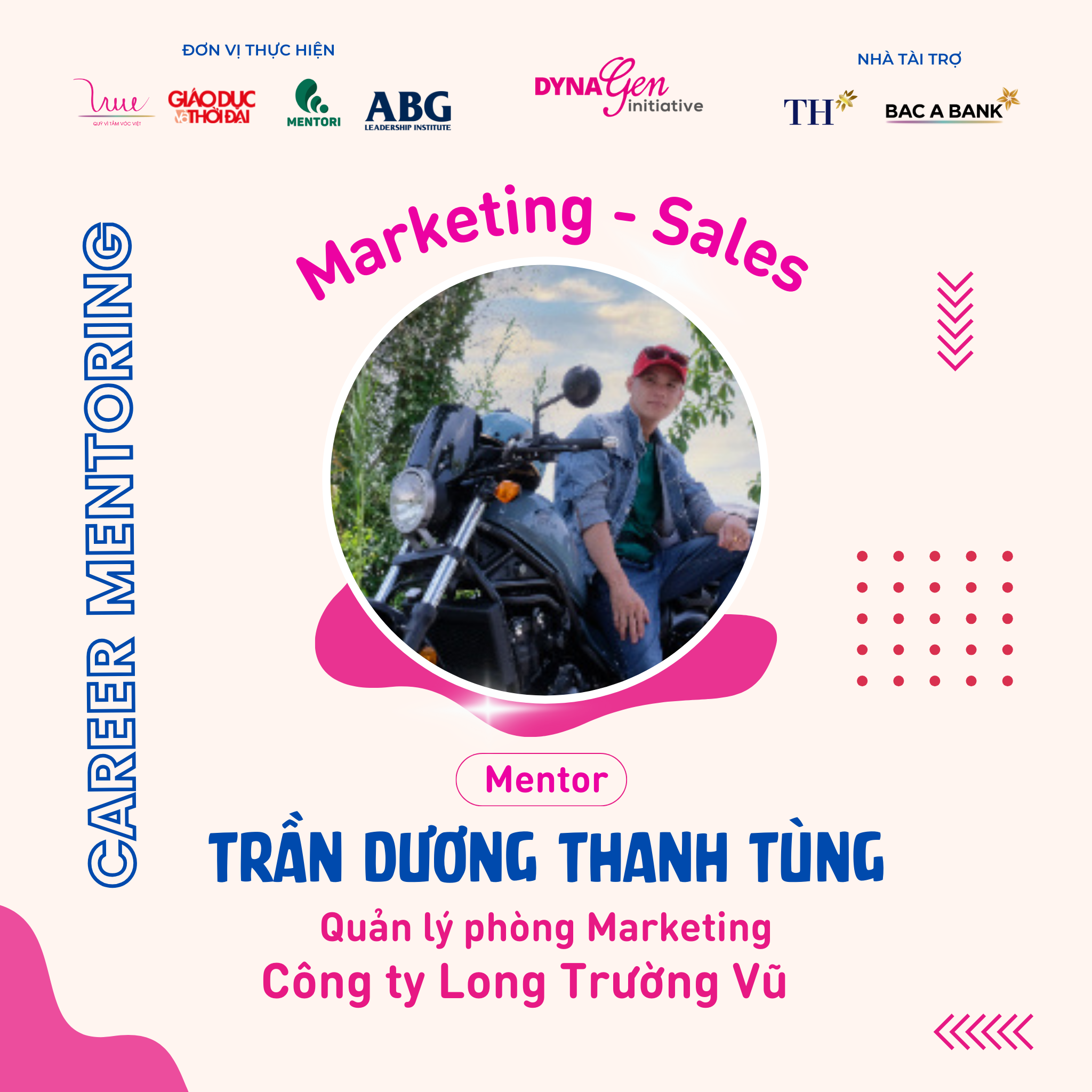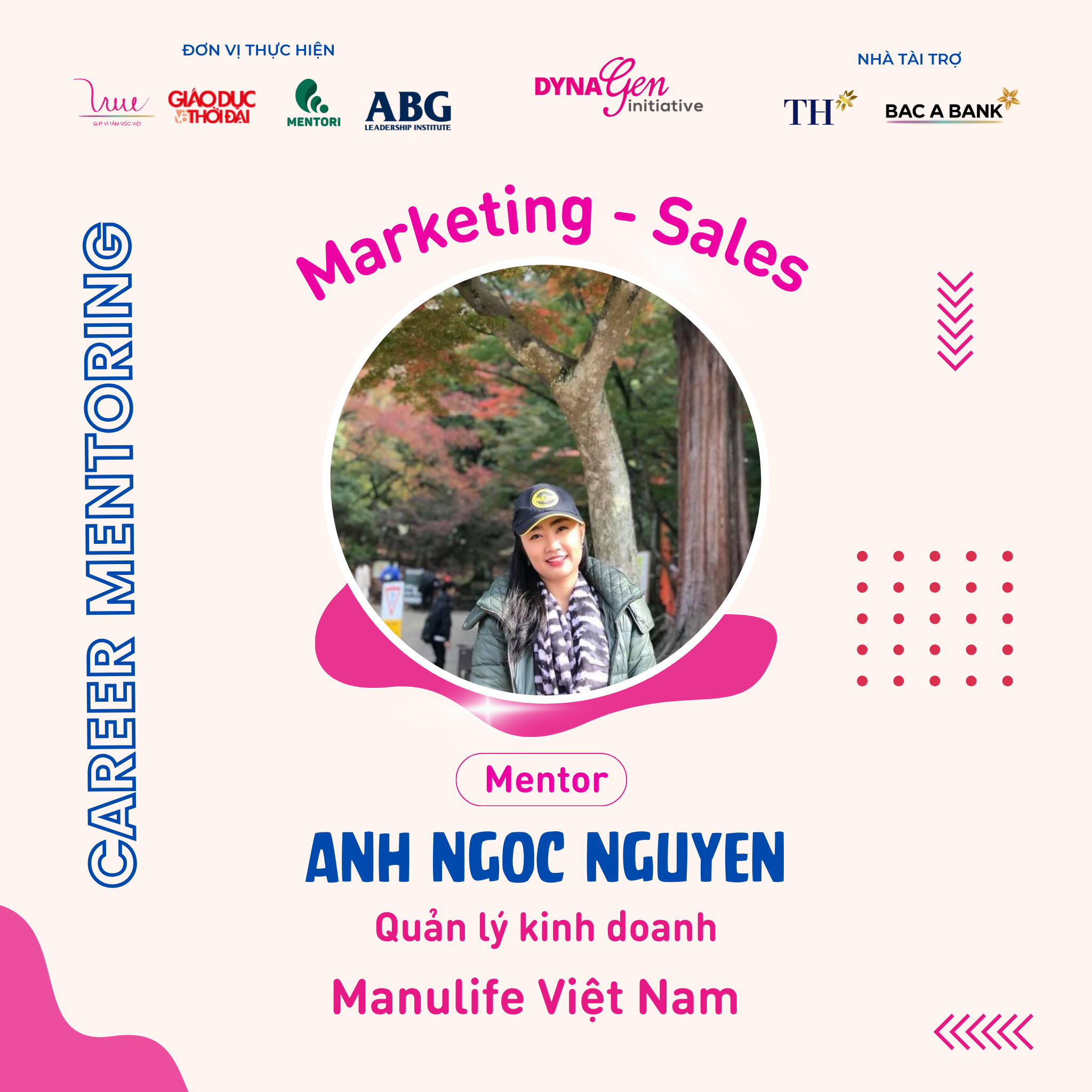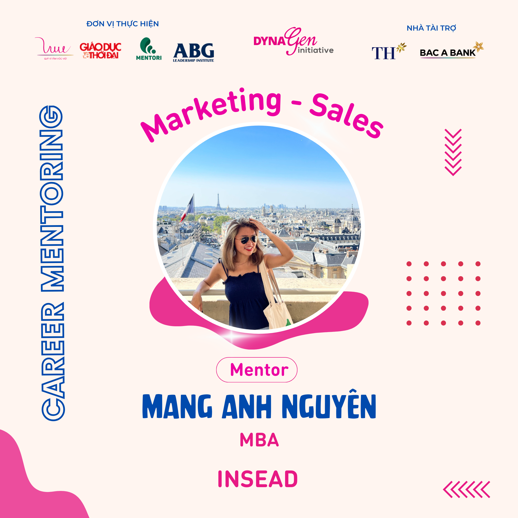 Không chỉ có profile siêu khủng, các anh chị Mentors còn có rất nhiều kinh nghiệm trong cách chinh phục nhà tuyển dụng cũng như xây dựng lộ trình, hướng đi sự nghiệp trong ngành Marketing - Sales, DynaGen Initiative tin rằng các bạn Mentee sẽ thu được siêu nhiều kiến thức và giá trị từ các vị Mentors luôn!!