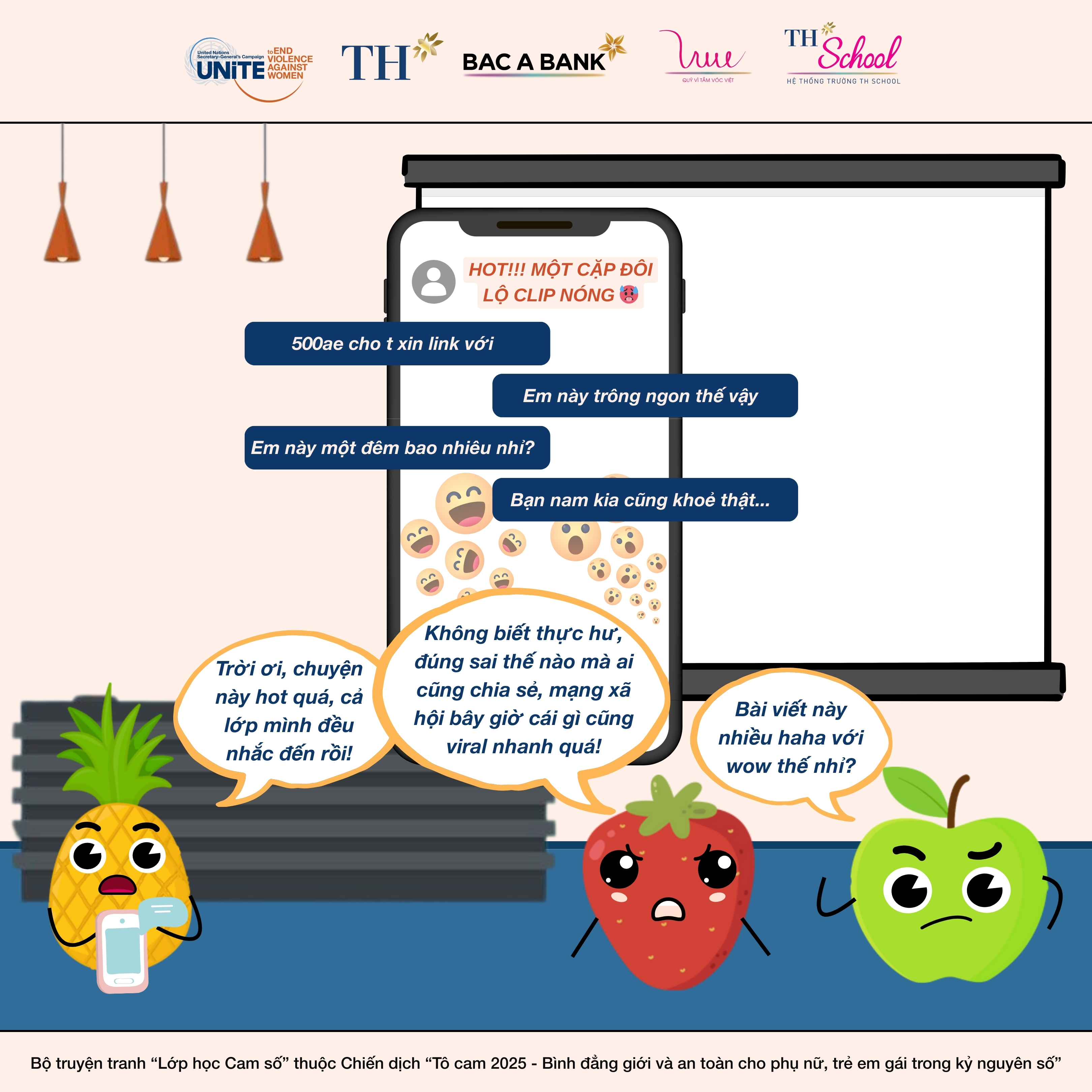 Hôm nay, Lớp học Cam số bỗng trở nên xôn xao khi trên mạng xuất hiện thông tin về một cặp đôi bị phát tán clip riêng tư. Ngay dưới bài đăng, hàng loạt bình luận khiếm nhã cùng những lời yêu cầu “xin link” xuất hiện, khiến lượt chia sẻ tăng chóng mặt.