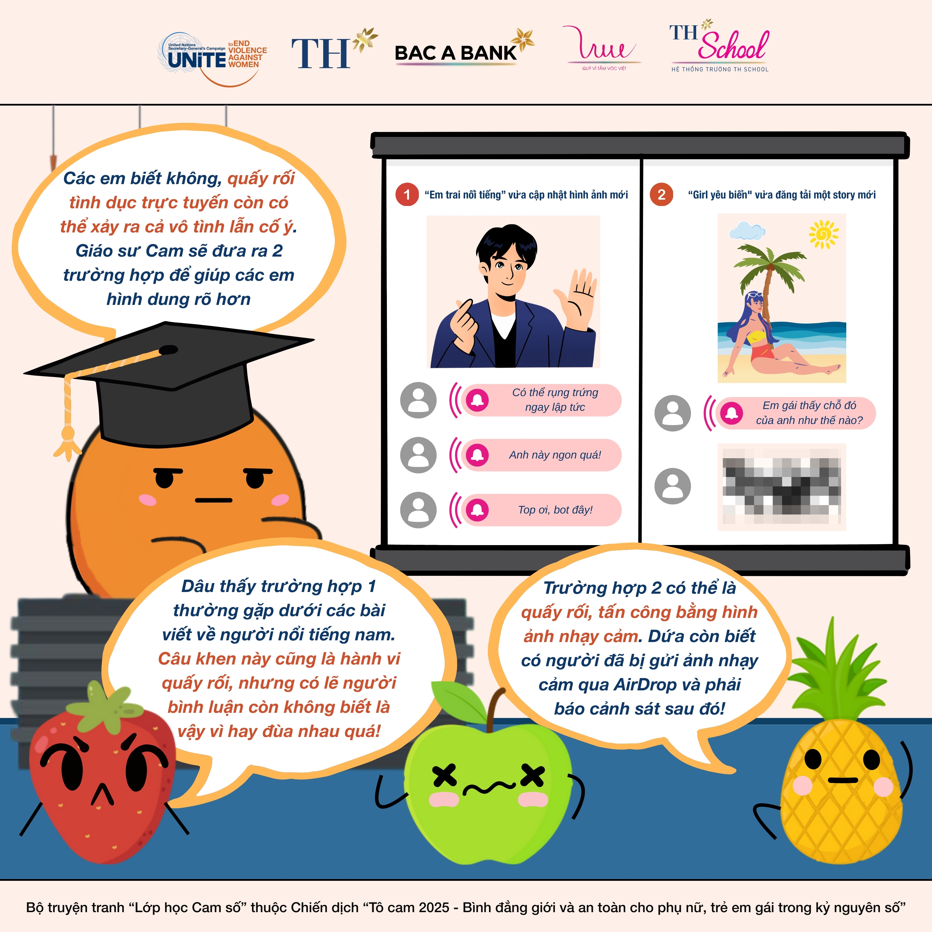 Vậy quấy rối tình dục trực tuyến là gì? Những hành vi nào được xem là quấy rối tình dục trực tuyến? Và trong những câu chuyện như thế này, ai phải chịu trách nhiệm? Hãy cùng Giáo sư Cam theo dõi Lớp học Cam số để được giải đáp!