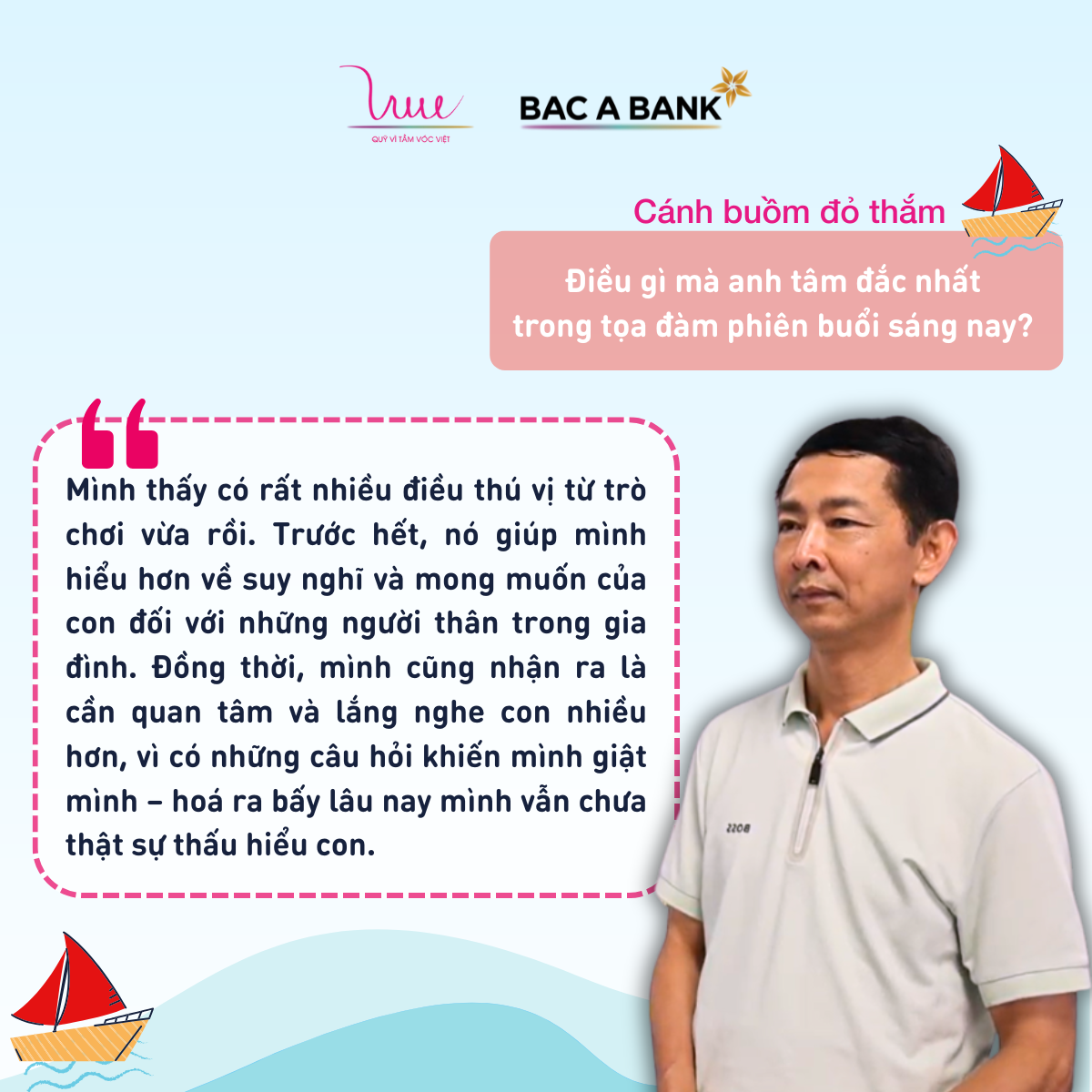 Dù chỉ là những trò chơi ngắn, nhưng cũng đã tạo ra những cơ hội tuyệt vời để các bố mẹ và các con thấu hiểu, chia sẻ những điều mà bình thường có thể bị bỏ qua trong nhịp sống hối hả. Nhiều phụ huynh nhận ra: muốn đồng hành cùng con, trước hết cần học cách lắng nghe con bằng cả sự chú tâm và đồng cảm.