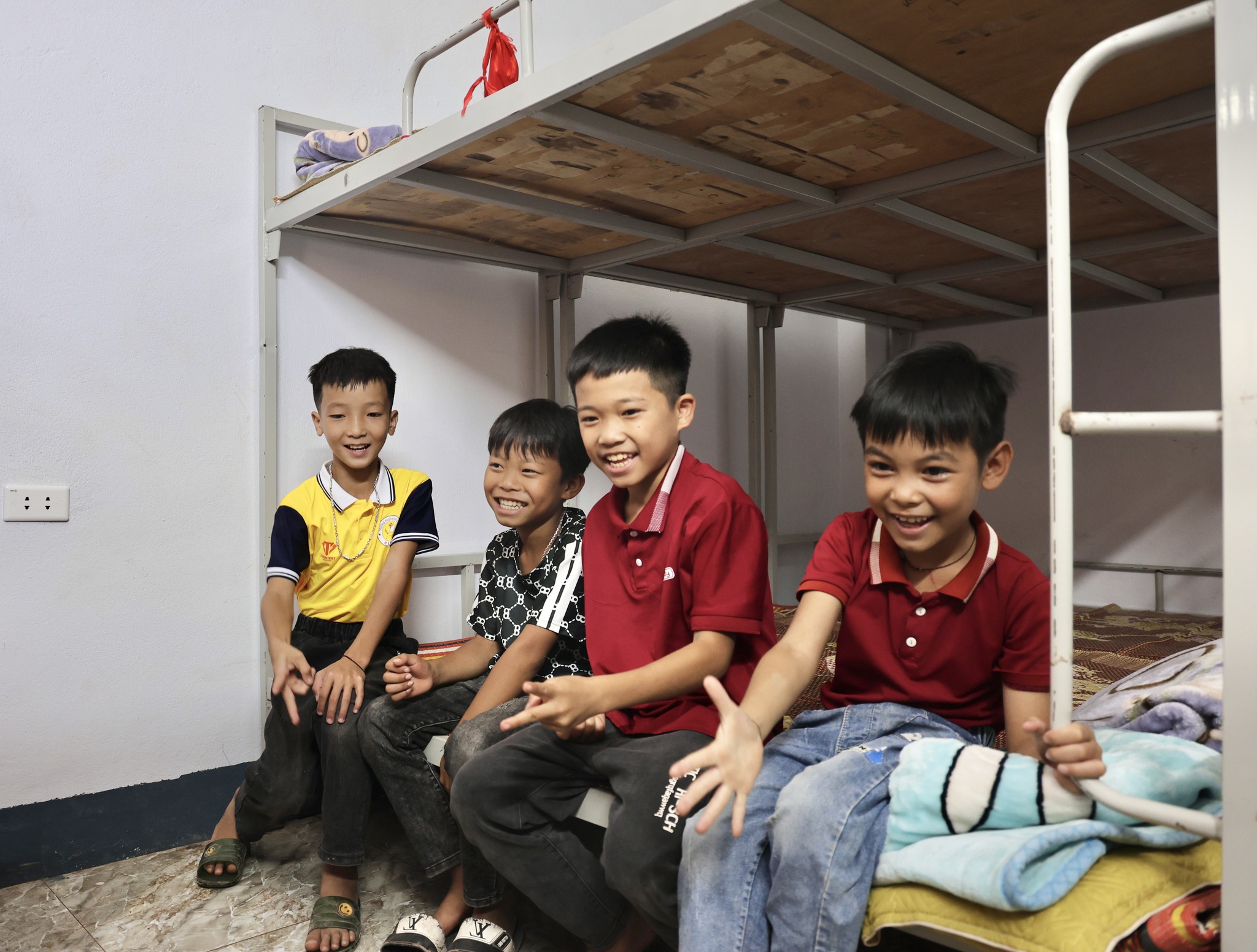 Tòa nhà ký túc xá 2 tầng bao gồm 10 phòng khép kín, đầy đủ nhà tắm, nhà vệ sinh, đảm bảo chỗ sinh hoạt an toàn và tiện nghi cho 209 học sinh bán trú tại trường. Công trình này không chỉ giải quyết tình trạng thiếu chỗ ở khi trường liên tục đón thêm học sinh lớp 3 từ các điểm trường lẻ về, mà còn mang đến một môi trường sinh hoạt khang trang, sạch sẽ cho các em.