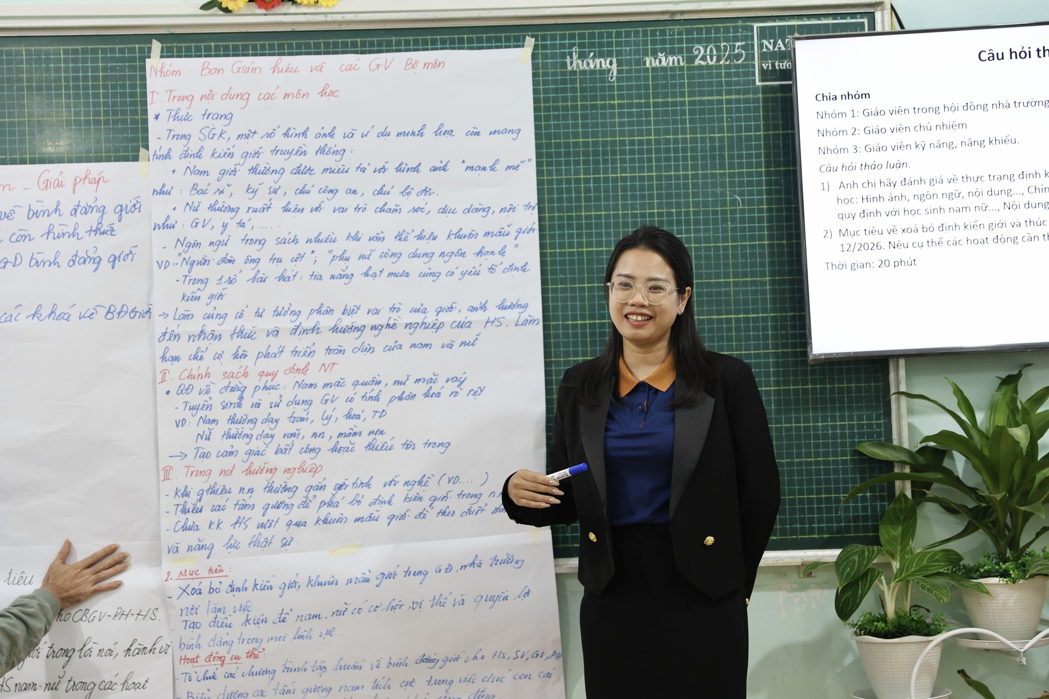 Không dừng lại ở nhận thức, các thầy, cô đã cùng xây dựng kế hoạch hành động cụ thể để lan tỏa bình đẳng giới trong trường học – từ việc lồng ghép yếu tố giới vào bài giảng, rà soát nội dung sách giáo khoa, đến tổ chức chuyên đề và hoạt động ngoại khóa cho học sinh.