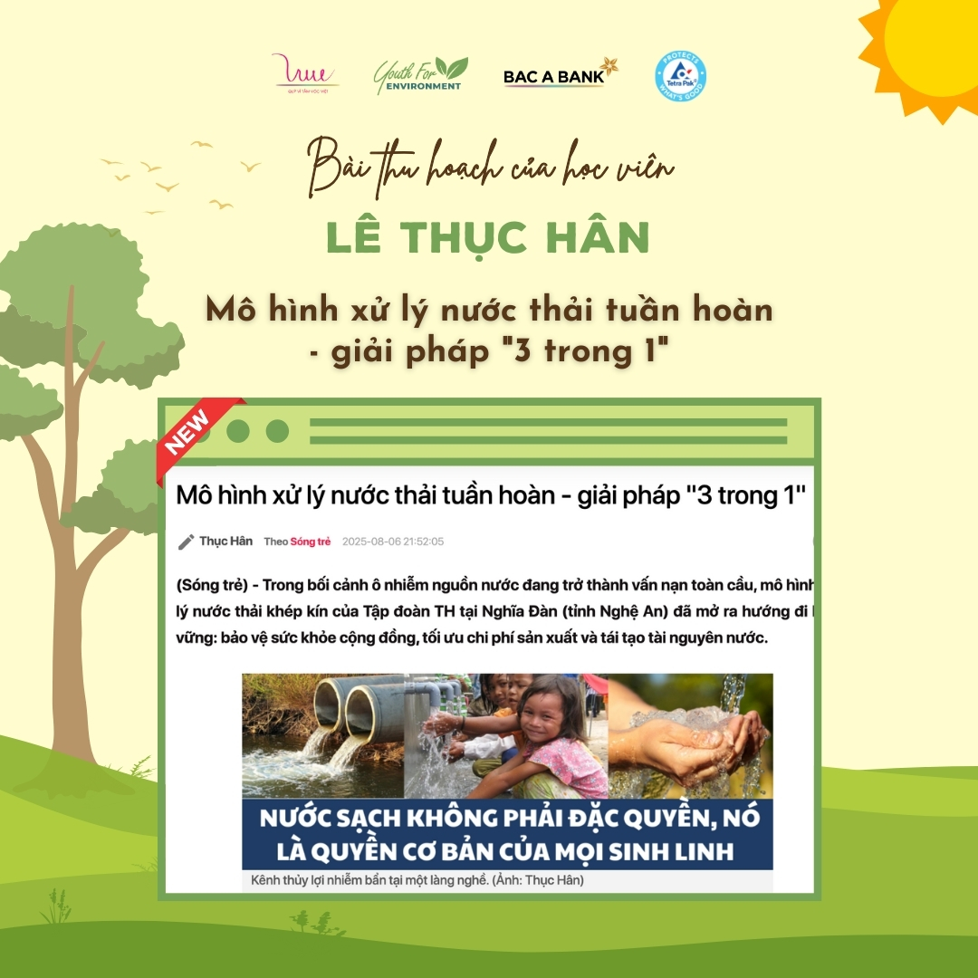 Từ trải nghiệm ấy, các học viên đã cho ra đời những bài thu hoạch phản ánh nhiều chủ đề môi trường nóng hổi, thể hiện góc nhìn của những nhà báo, nhà truyền thông trẻ cũng như tinh thần trách nhiệm của thanh niên trước các thách thức về môi trường trong mối quan hệ với sản xuất.