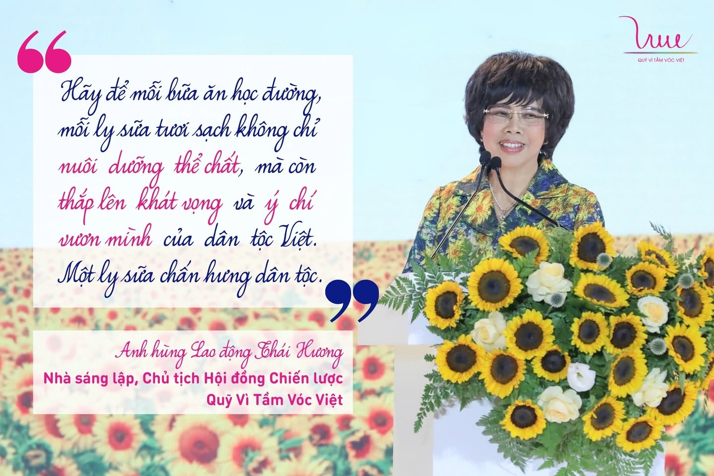 Với tinh thần và khát vọng ấy, trong nhiều năm qua, Quỹ Vì Tầm Vóc Việt (VSF) đã bền bỉ, kiên trì đồng hành cùng thế hệ trẻ Việt Nam, trong đó tiêu biểu là Chương trình Sức khoẻ học đường - một trong năm chương trình mục tiêu của VSF. Thông qua các hoạt động của chương trình, hơn 110 triệu ly sữa TH true MILK, 8 triệu bữa ăn dinh dưỡng học đường đã đến tay trẻ em khắp cả nước. Cùng với đó, các dự án như “1.000 nhà vệ sinh cho em”, giải chạy học sinh - sinh viên S-Race, và hàng loạt hoạt động truyền thông, tập huấn nâng cao năng lực về dinh dưỡng học đường cho giáo viên, phụ huynh đã được triển khai, gieo mầm cho một thế hệ khỏe mạnh, tự tin, có thể lực và trí lực để vươn xa.