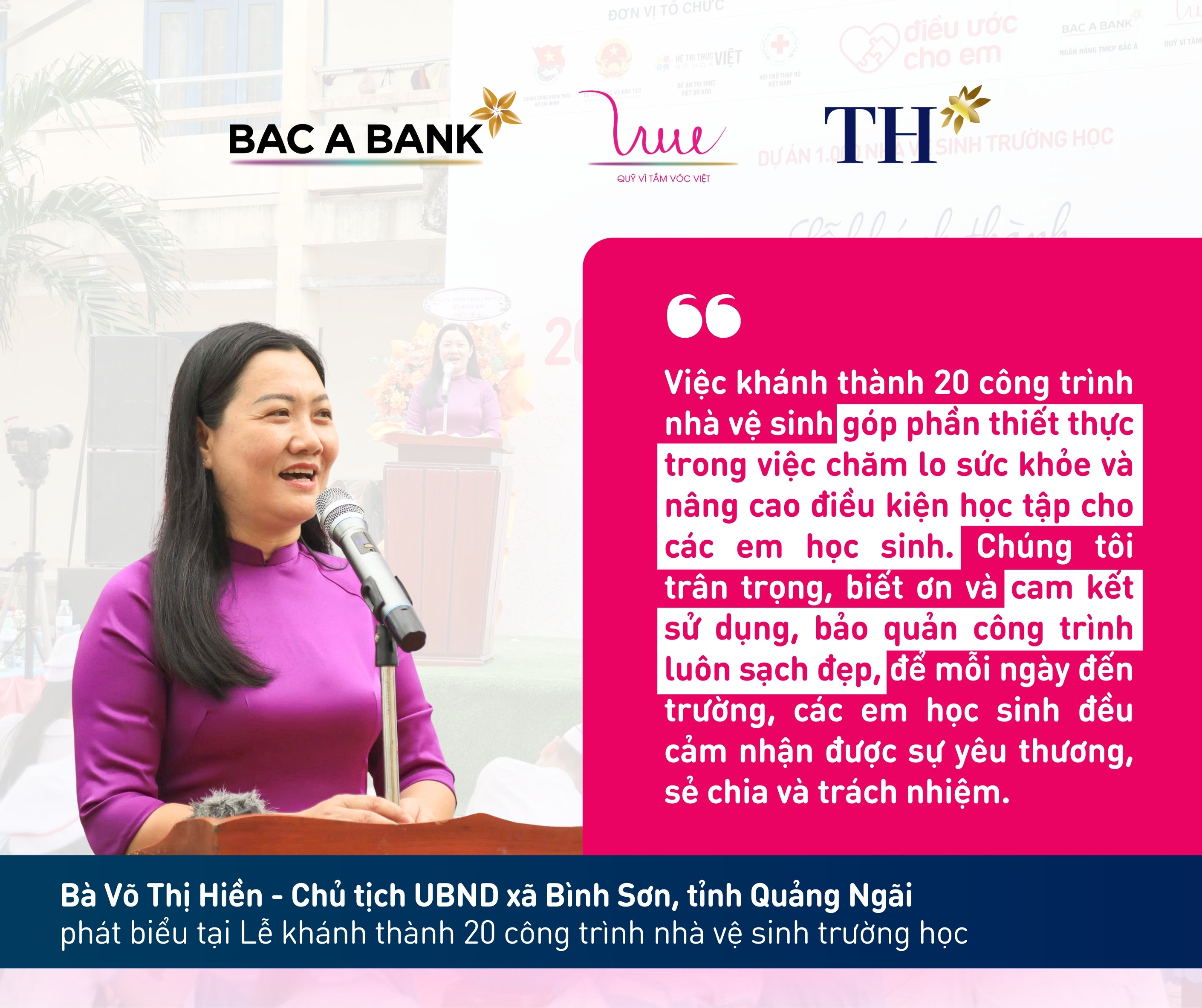 Quote của bà Võ Thị Hiền - Chủ tịch UBND xã Bình Sơn tại Lễ khánh thành 20 NVS