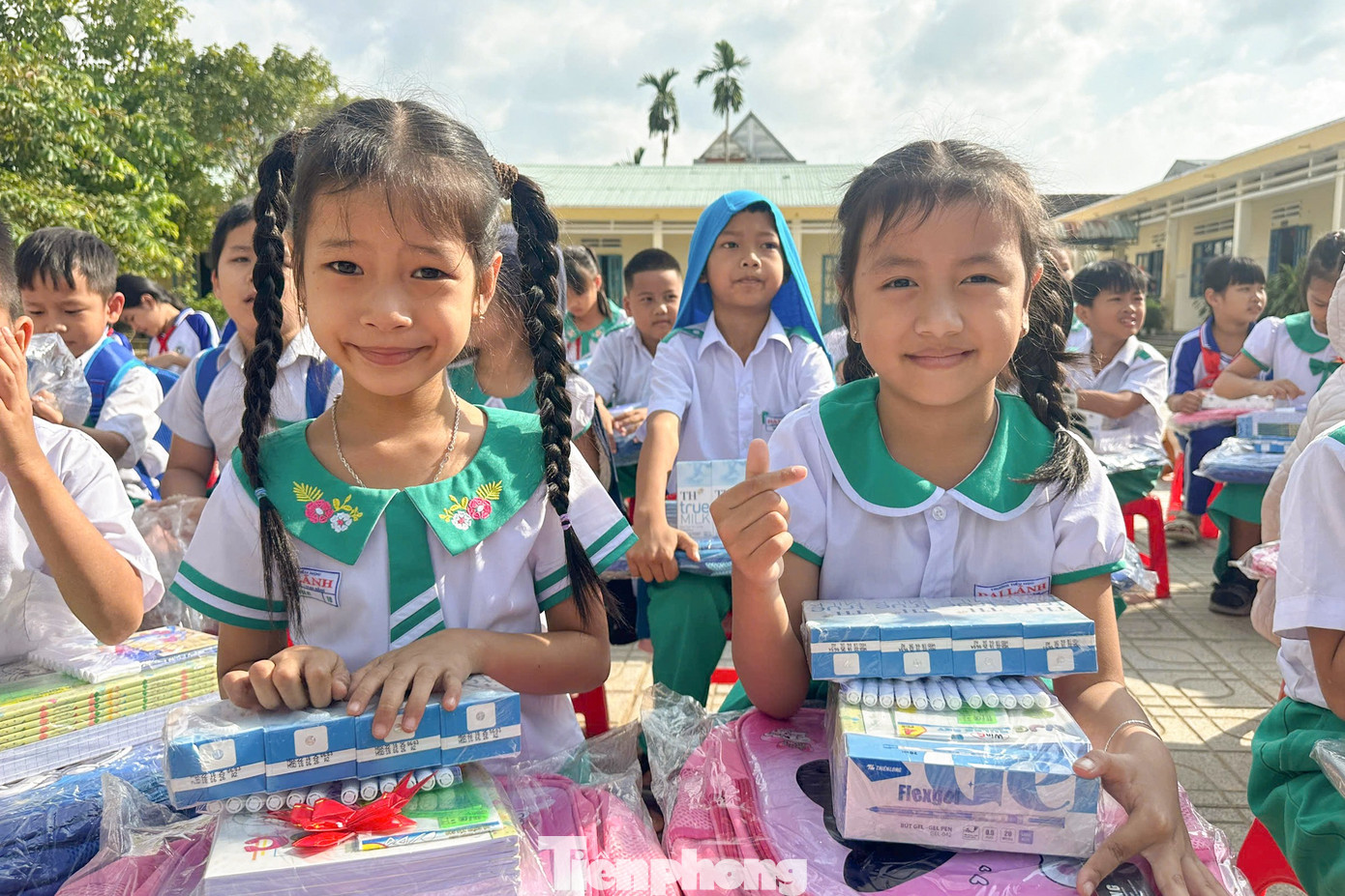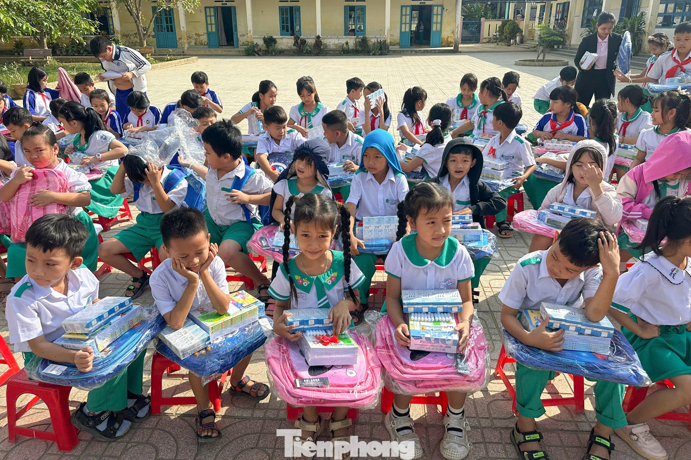 Những phần quà tiếp sức các em đến trường sau lũ lụt.
