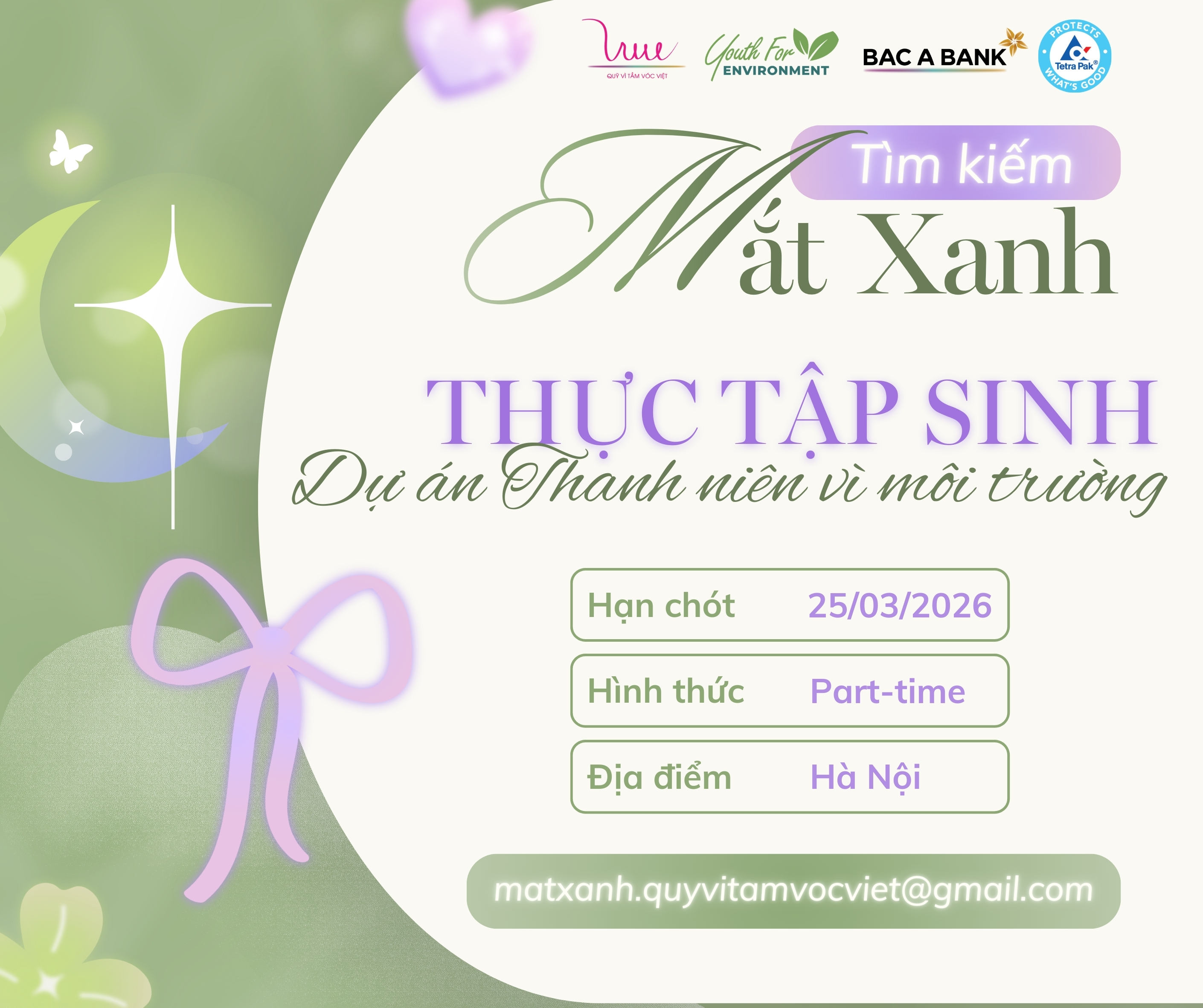 Quỹ Vì Tầm Vóc Việt tìm kiếm Thực tập sinh Part-time Dự án "Thanh niên vì môi trường - Youth for Environment"