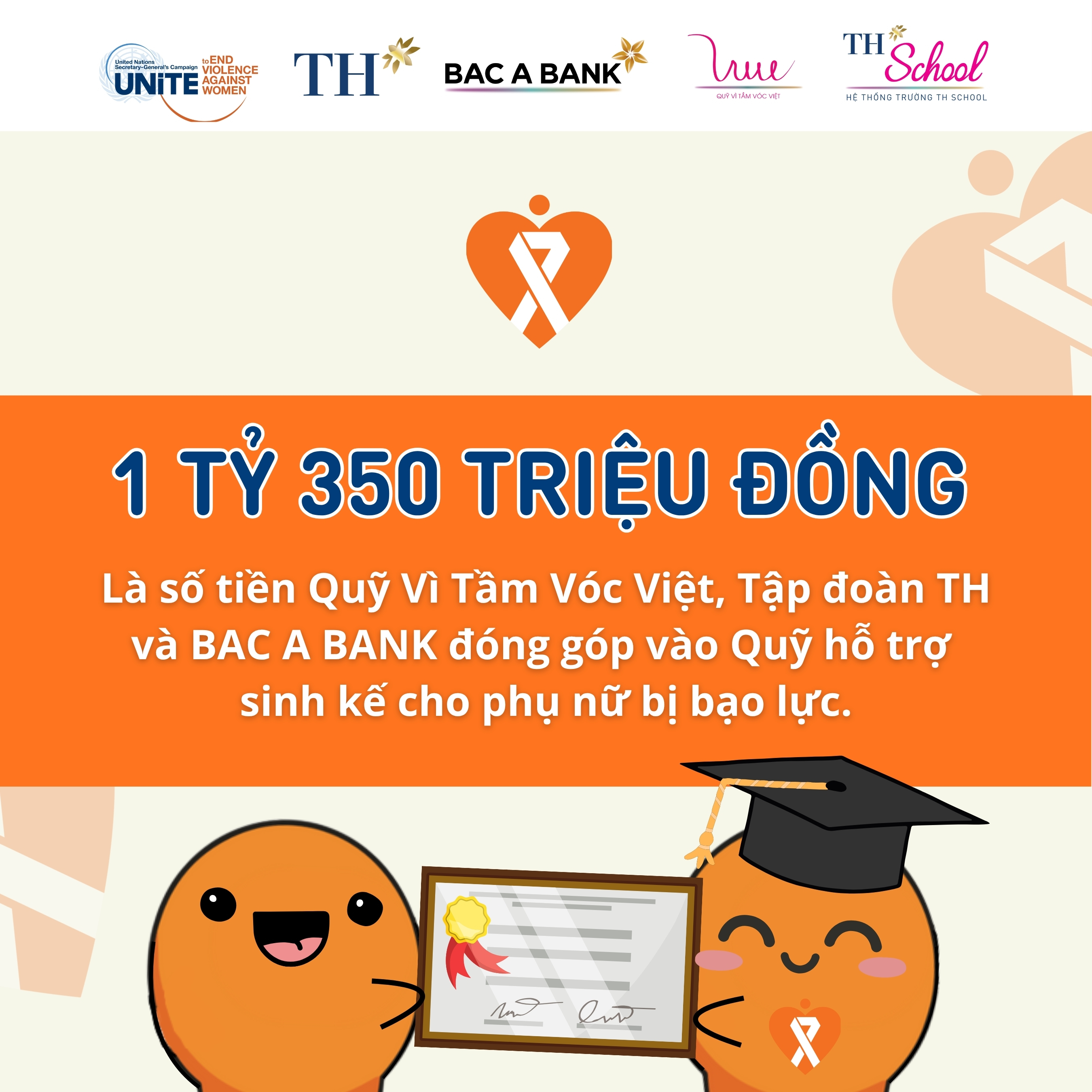 1,35 TỶ ĐỒNG được Quỹ Vì Tầm Vóc Việt, BAC A BANK và Tập đoàn TH đóng góp vào Quỹ hỗ trợ sinh kế cho phụ nữ bị bạo lực.