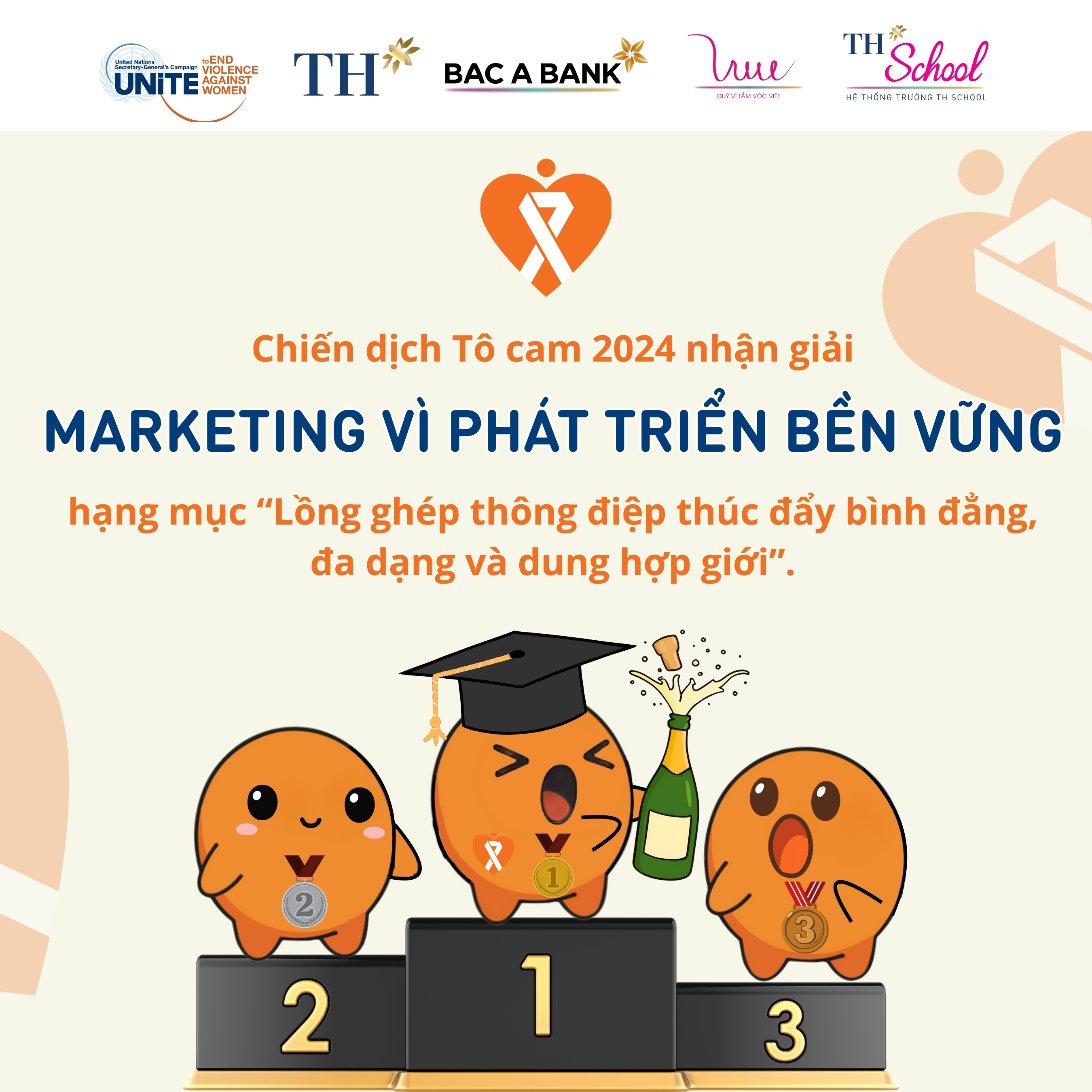 Và đặc biệt trong năm 2024, Chiến dịch Tô cam được vinh danh với Giải thưởng Marketing Vì Phát triển Bền vững, hạng mục “Lồng ghép thông điệp thúc đẩy bình đẳng, đa dạng và dung hợp giới.”