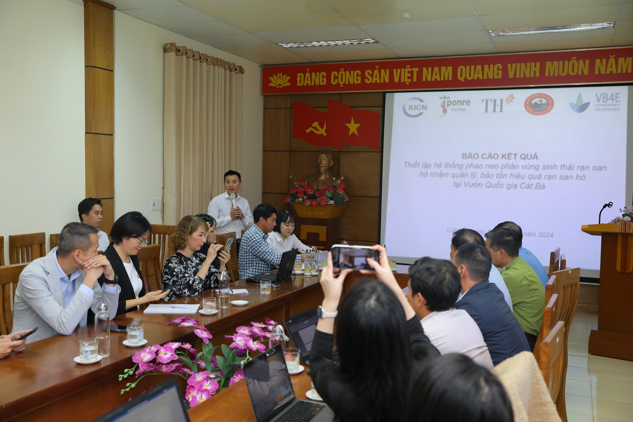 Chiều ngày 28/11, tại thành phố Hải Phòng, Liên minh Bảo tồn Thiên nhiên Quốc tế (IUCN) đã tổ chức buổi họp tổng kết hoạt động “Thả phao khoanh vùng sinh thái bảo vệ rạn san hô tại Vườn Quốc gia Cát Bà”. Hoạt động này được tài trợ bởi Công ty Cổ phần Chuỗi Thực phẩm TH (thuộc Tập đoàn TH) trong khuôn khổ Liên minh Doanh nghiệp vì Môi trường Việt Nam (VB4E) – một sáng kiến được IUCN thiết lập và vận hành từ năm 2021 đến 2024.