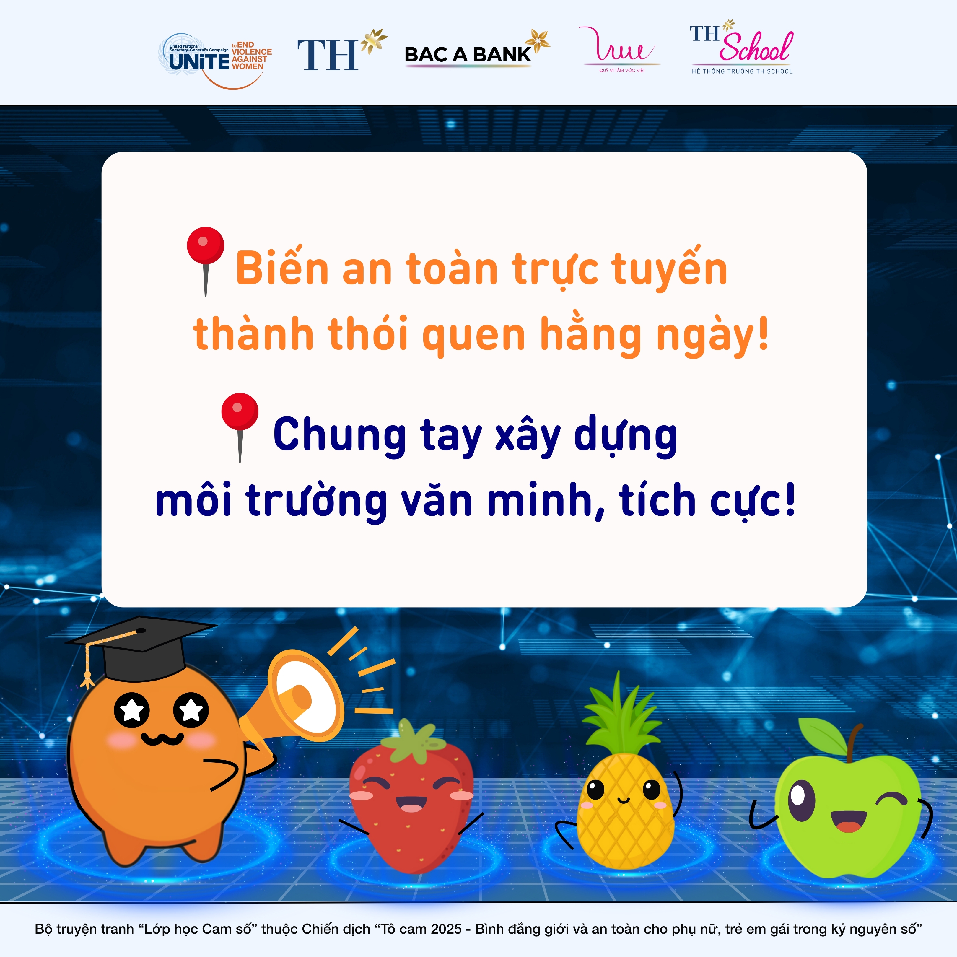 Hôm nay cũng là ngày cuối cùng của Chiến dịch Tô cam, Giáo sư Cam vẫn mong rằng mỗi chúng ta sẽ biến an toàn trực tuyến thành một thói quen hằng ngày. Hãy cùng chung tay xây dựng một môi trường sống và cả môi trường mạng văn minh, tích cực, để mỗi trải nghiệm số đều an toàn, thú vị và tràn đầy niềm vui!