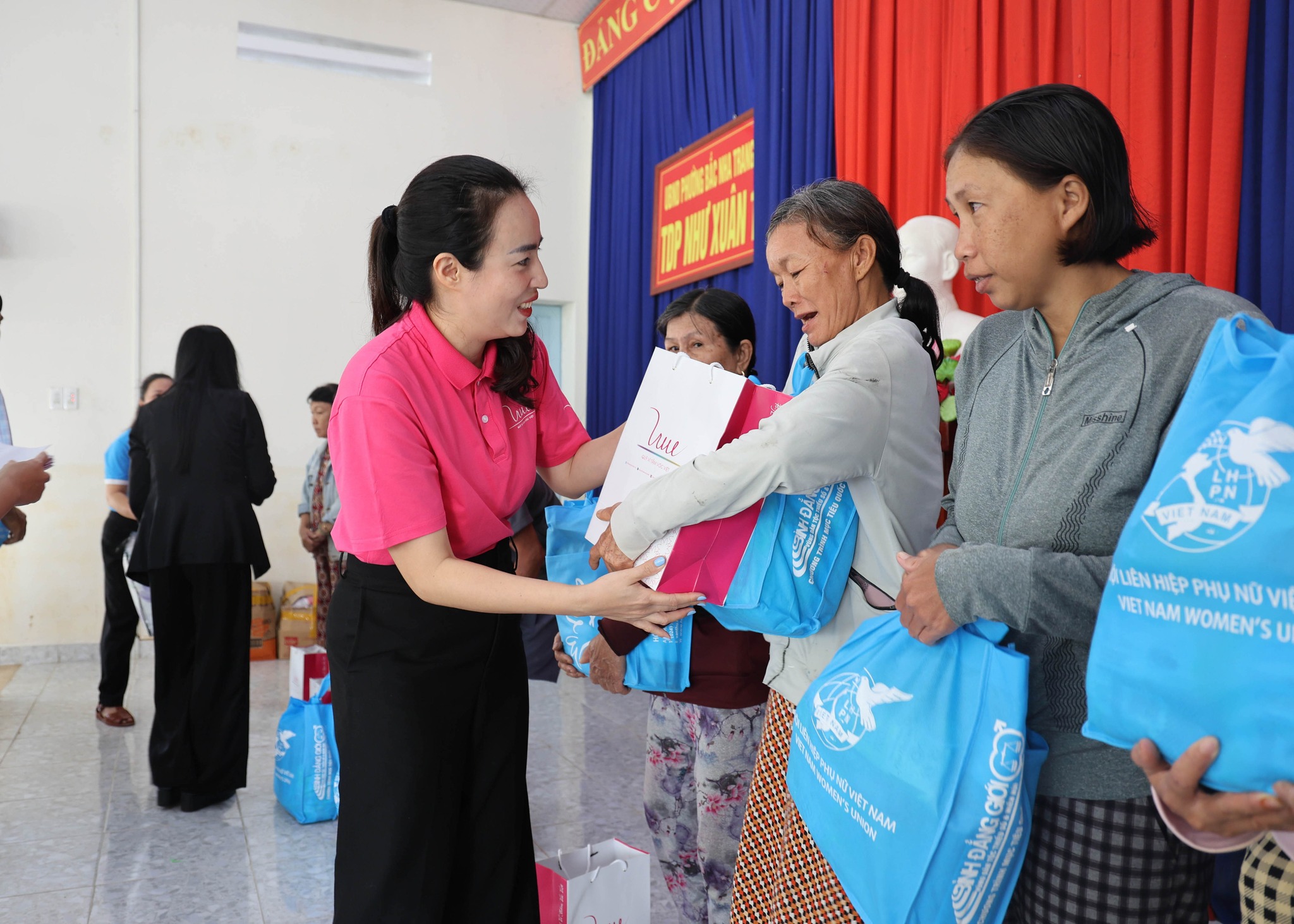Cùng với Phó Chủ tịch Thường trực Hội LHPN Việt Nam Trần Lan Phương, bà Trần Thị Như Trang, Chủ tịch Hội đồng Quản lý VSF và đoàn công tác đã trực tiếp đi thăm và trao quà các hộ có hoàn cảnh khó khăn và bị ngập nặng.