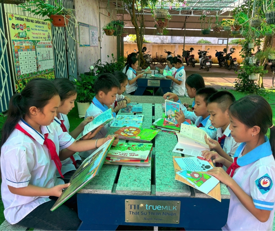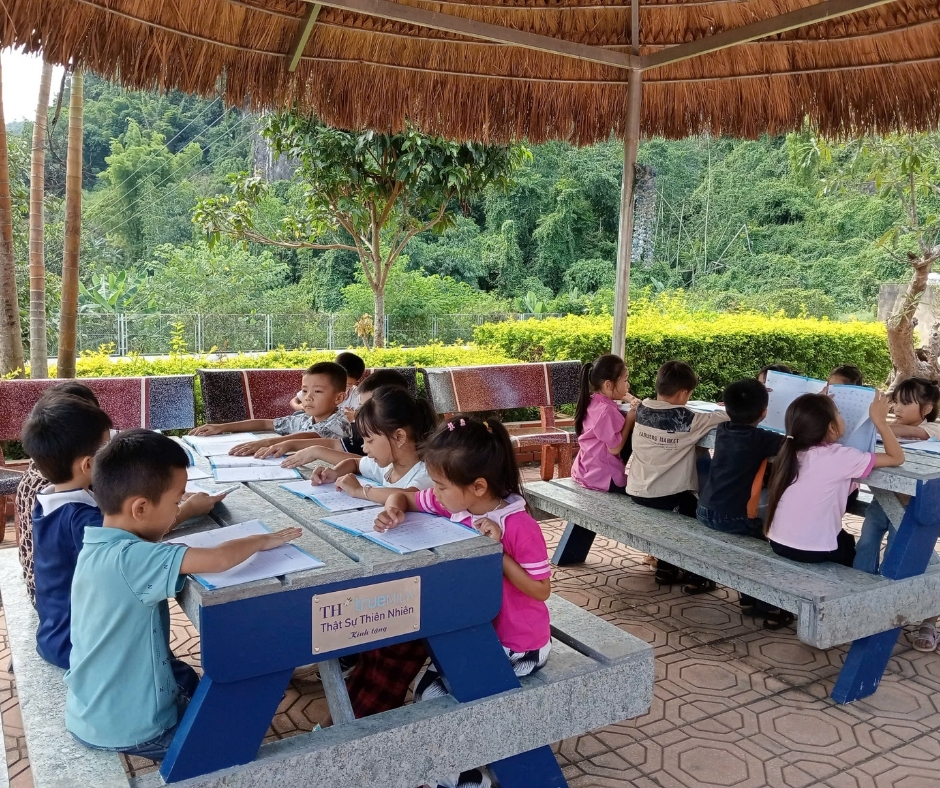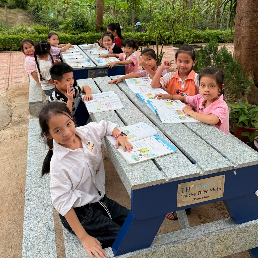 Không chỉ mang giá trị sử dụng thực tiễn, những bộ bàn ghế xanh và chậu cây Eco pot còn là cách để các em học sinh trải nghiệm trực tiếp lợi ích của tái chế, từ đó hình thành thói quen sống xanh và biết trân trọng những giá trị bền vững cho cộng đồng và môi trường.