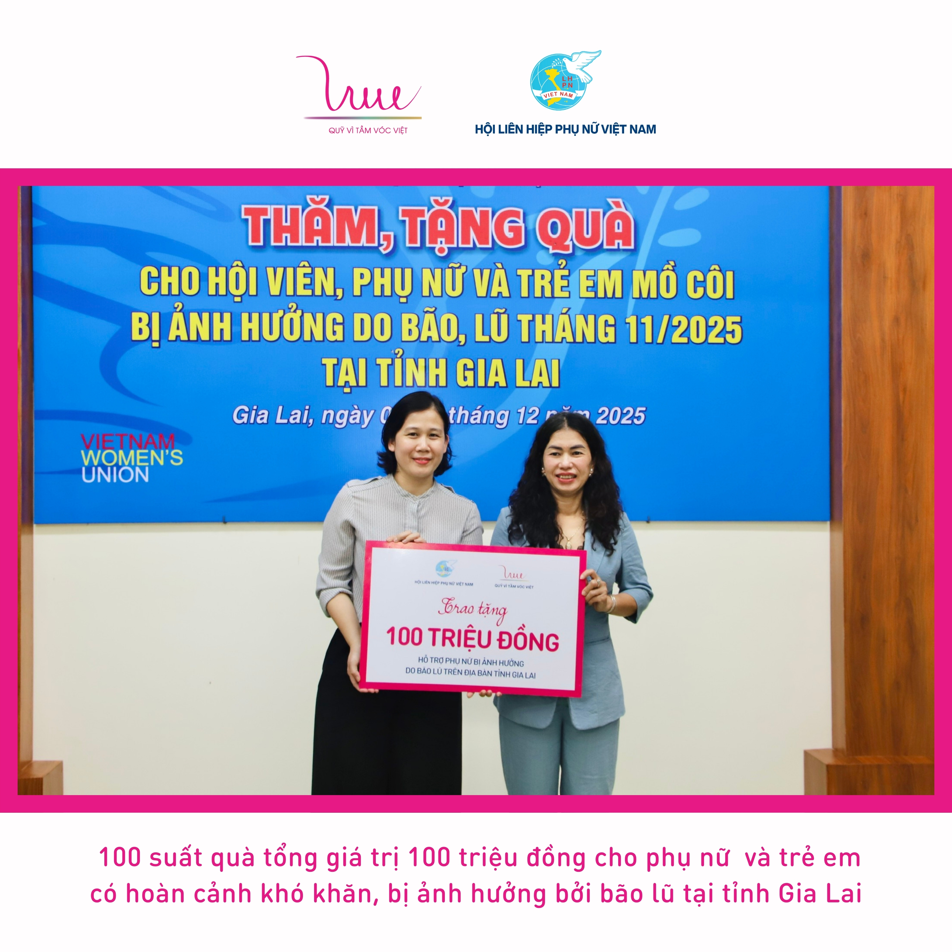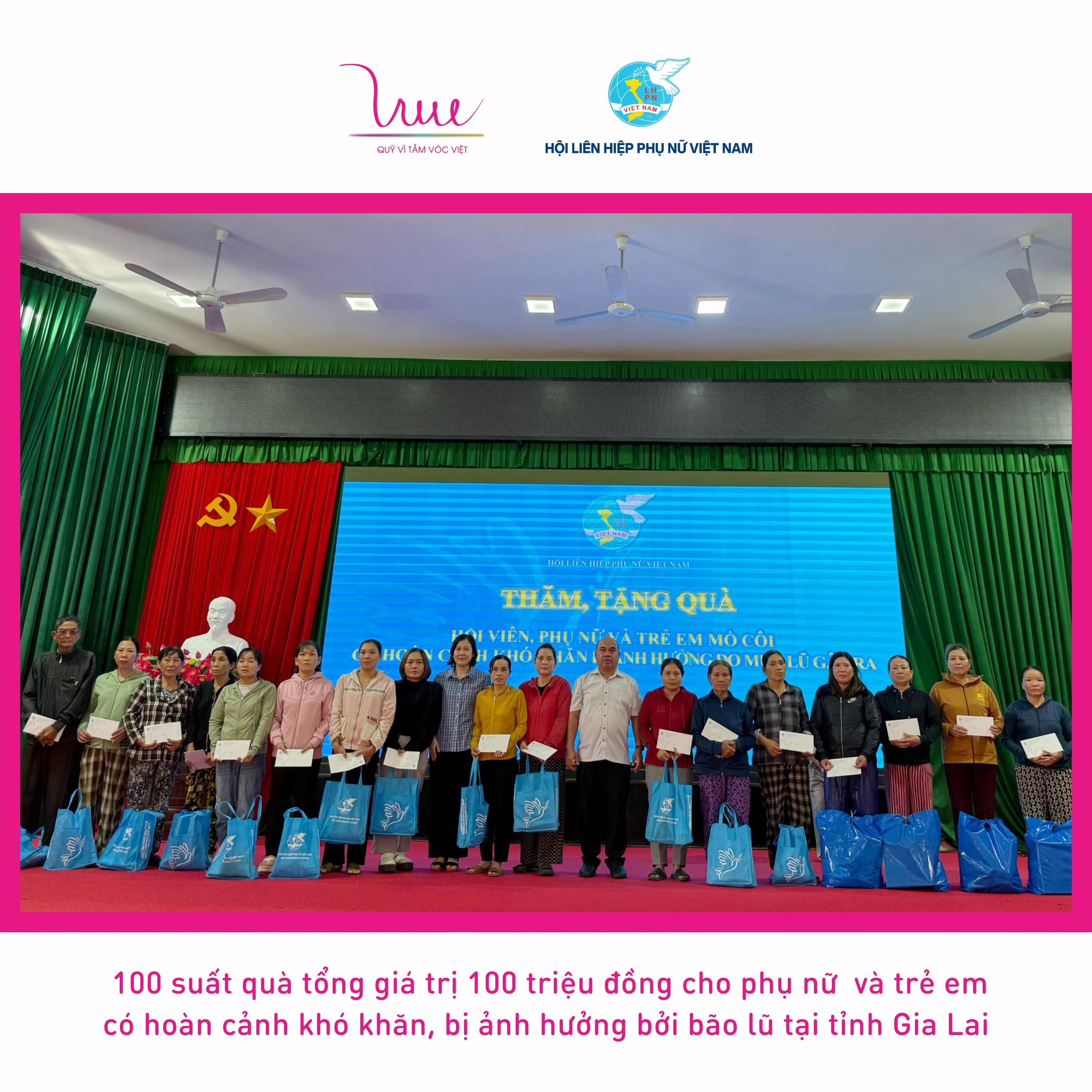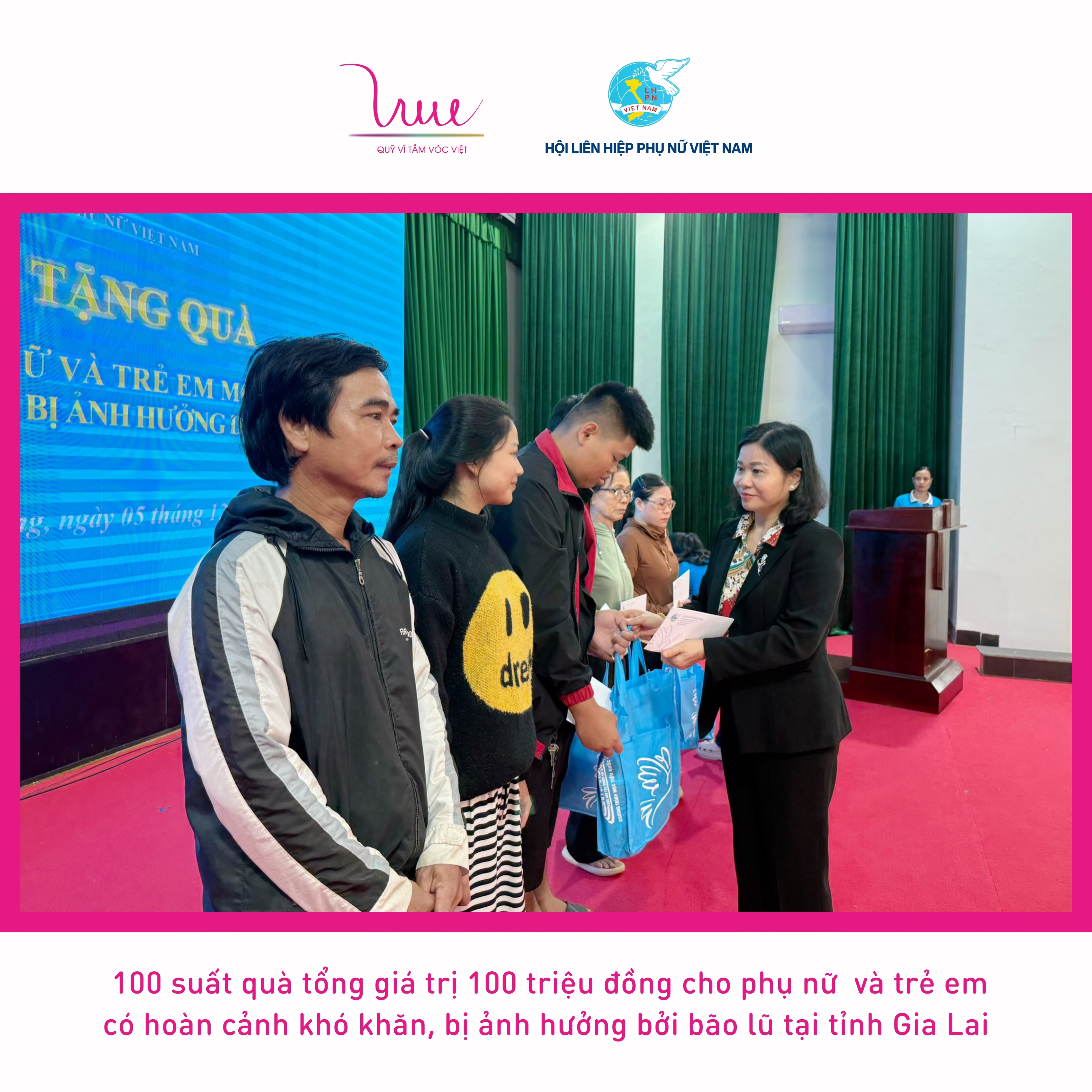Tại Gia Lai, VSF đã phối hợp Hội Liên hiệp Phụ nữ tỉnh Gia Lai trao 100 suất quà, mỗi suất trị giá 1 triệu đồng tiền mặt với tổng giá trị 100 triệu đồng cho phụ nữ có hoàn cảnh khó khăn trong vùng ảnh hưởng của bão lũ. Đây là hoạt động được triển khai từ Chiến dịch “Gửi trọn yêu thương tới đồng bào chịu ảnh hưởng bởi thiên tai, lũ lụt năm 2025” do VSF phát động.